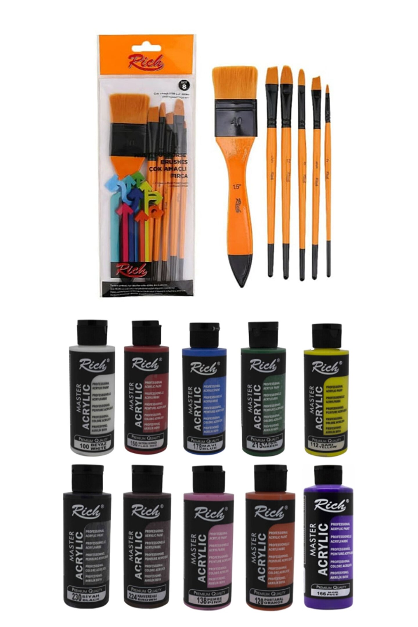 Rich 10lu Akrilik Boya 120 Cc 6lı Karma Fırça Seti