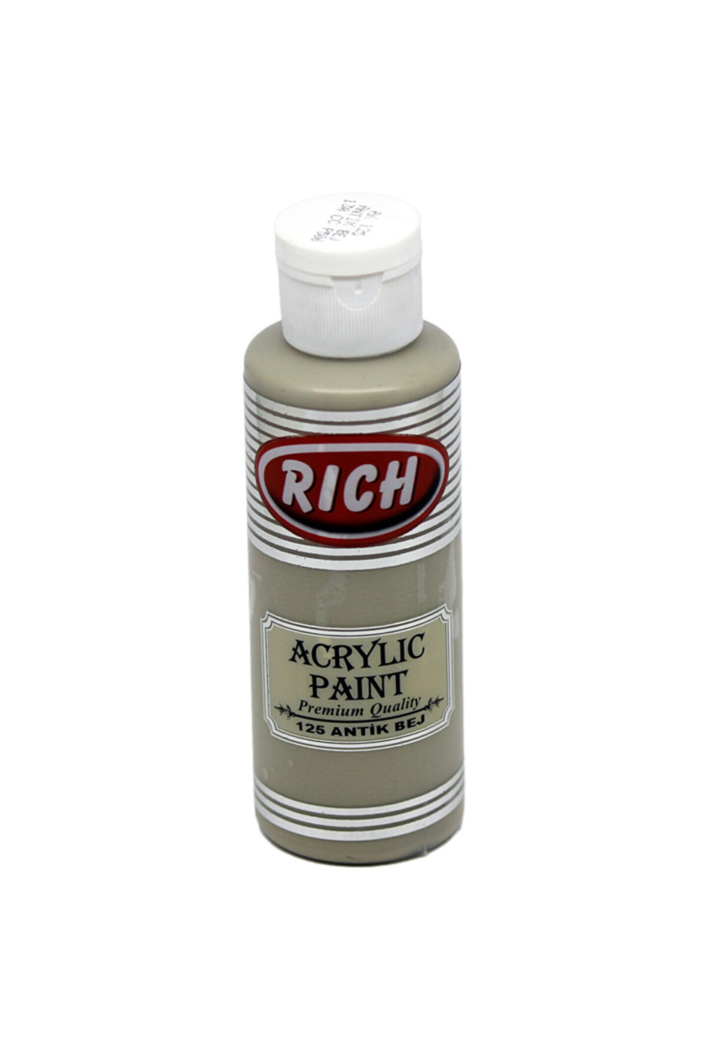 Rich Akrilik Boya 120 cc Antik Bej 125 Dekorasyon ve sanatsal hobi çalışmalarında kullanılan boyalardır.; Su ile kolayca inceltilebilir.; Temizlemesi kolay.; Çabuk kuruma süresi ile pratik kullanıcı deneyimi.; Renkler birbiri ile kolayca karıştırılabilir.; Ahşap, cam, seramik, tuval ve polyester gibi farklı yüzeylerde rahatlıkla kullanılabilir.; Hobi meraklılarının sıklıkla karşılaştığı renklendirme sorunu Rich akrilik boya ile çözülüyor.; “Tamam da, Rich akrilik boya ile ne boyanır ?” sorusunu sorduğunuzu duyar gibiyiz ve bunun cevabı çok basit; “HER ŞEY!”.; Rich akrilik boya ile aklınıza gelebilecek her yüzeyi boyayabilir, istediğiniz rengi seçerek zengin renk kataloğundan faydalanabilirsiniz.; Bidoluhobi portföyündeki Rich akrilik boya renk kataloğuna bakıp, beğendiğiniz renkleri seçerek dilediğiniz kadar sipariş verebilirsiniz.; Hatta ve hatta, bir renkle yetinmeyip kendinize Rich akrilik boya seti bile oluşturabilirsiniz ve istediğiniz her yüzeyi sıkıntı yaşamadan boyamanın rahatlığına varabilirsiniz.; Sanat icra edenlerin de sıklıkla kullandığı akrilik boyayı, her yüzeyi kolaylıkla boyarken kullanabileceğiniz gibi, amatör veya profesyonel resim yapmak için de kullanabilirsiniz.; Özellikle amatör olarak resim yapan veya her düzeydeki resim kursu öğrencileri için vazgeçilmez olan kaliteli akrilik boya, yaratım sürecinize kesinlikle kolaylık sağlayacaktır.; En uygun akrilik boya çeşitli renk seçeneklerine bidoluhobi mağazamızdan ulaşabilirsiniz.; AKRİLİK BOYA NEDİR VE NASIL KULLANILIR? Akrilik boya, hammaddesi elyaf olan, başta da belirttiğimiz gibi özellikle hobi meraklılarının renklendirme konusunda hayatını kurtaran, asla koku yapmayan ve kolay uygulanabilir olması sebebiyle sıklıkla tercih edilen bir boya türüdür.; Kolay kuruyan akrilik boya ile istediğiniz ürünü boyayıp vakit kaybetmeden kullanmaya başlayabilirsiniz.; Siparişleriniz bidoluhobi tarafından özenle hazırlanır ve en kısa sürede ilgili kargo firmasına teslim edilir.
