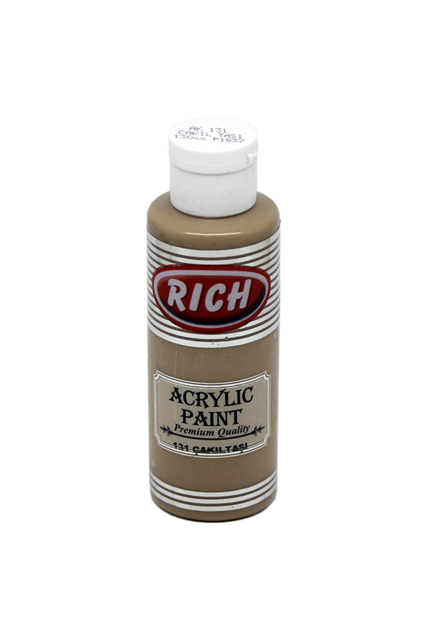 Rich Akrilik Boya 120 cc Çakıl Taşı 131 Dekorasyon ve sanatsal hobi çalışmalarında kullanılan boyalardır.; Su ile kolayca inceltilebilir.; Temizlemesi kolay.; Çabuk kuruma süresi ile pratik kullanıcı deneyimi.; Renkler birbiri ile kolayca karıştırılabilir.; Ahşap, cam, seramik, tuval ve polyester gibi farklı yüzeylerde rahatlıkla kullanılabilir.; Hobi meraklılarının sıklıkla karşılaştığı renklendirme sorunu Rich akrilik boya ile çözülüyor.; “Tamam da, Rich akrilik boya ile ne boyanır ?” sorusunu sorduğunuzu duyar gibiyiz ve bunun cevabı çok basit; “HER ŞEY!”.; Rich akrilik boya ile aklınıza gelebilecek her yüzeyi boyayabilir, istediğiniz rengi seçerek zengin renk kataloğundan faydalanabilirsiniz.; Bidoluhobi portföyündeki Rich akrilik boya renk kataloğuna bakıp, beğendiğiniz renkleri seçerek dilediğiniz kadar sipariş verebilirsiniz.; Hatta ve hatta, bir renkle yetinmeyip kendinize Rich akrilik boya seti bile oluşturabilirsiniz ve istediğiniz her yüzeyi sıkıntı yaşamadan boyamanın rahatlığına varabilirsiniz.; Sanat icra edenlerin de sıklıkla kullandığı akrilik boyayı, her yüzeyi kolaylıkla boyarken kullanabileceğiniz gibi, amatör veya profesyonel resim yapmak için de kullanabilirsiniz.; Özellikle amatör olarak resim yapan veya her düzeydeki resim kursu öğrencileri için vazgeçilmez olan kaliteli akrilik boya, yaratım sürecinize kesinlikle kolaylık sağlayacaktır.; En uygun akrilik boya çeşitli renk seçeneklerine bidoluhobi mağazamızdan ulaşabilirsiniz.; AKRİLİK BOYA NEDİR VE NASIL KULLANILIR? Akrilik boya, hammaddesi elyaf olan, başta da belirttiğimiz gibi özellikle hobi meraklılarının renklendirme konusunda hayatını kurtaran, asla koku yapmayan ve kolay uygulanabilir olması sebebiyle sıklıkla tercih edilen bir boya türüdür.; Kolay kuruyan akrilik boya ile istediğiniz ürünü boyayıp vakit kaybetmeden kullanmaya başlayabilirsiniz.; Siparişleriniz bidoluhobi tarafından özenle hazırlanır ve en kısa sürede ilgili kargo firmasına teslim edilir.