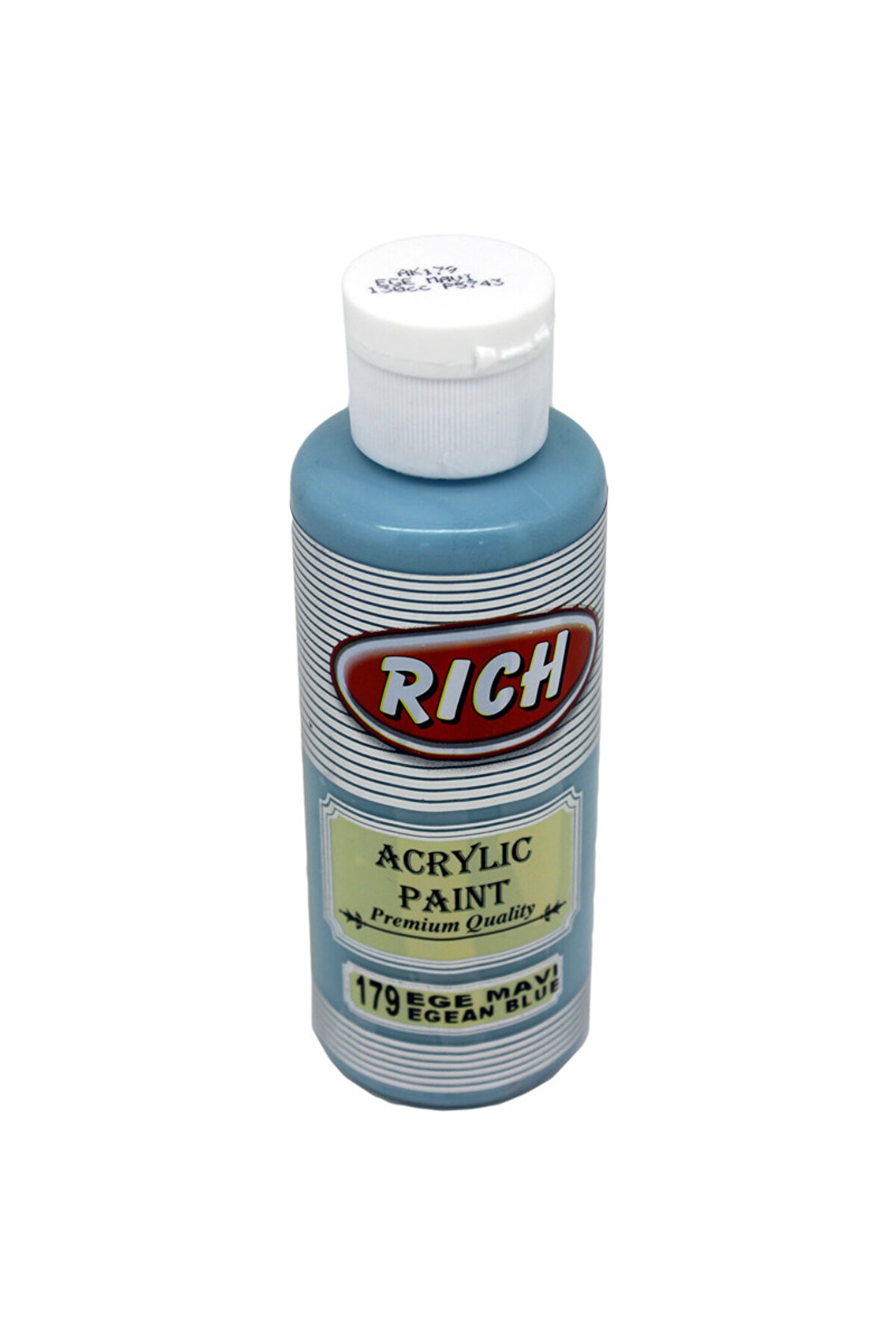 Rich Akrilik Boya 120 cc Ege Mavi 179 Dekorasyon ve sanatsal hobi çalışmalarında kullanılan boyalardır.; Su ile kolayca inceltilebilir.; Temizlemesi kolay.; Çabuk kuruma süresi ile pratik kullanıcı deneyimi.; Renkler birbiri ile kolayca karıştırılabilir.; Ahşap, cam, seramik, tuval ve polyester gibi farklı yüzeylerde rahatlıkla kullanılabilir.; Hobi meraklılarının sıklıkla karşılaştığı renklendirme sorunu Rich akrilik boya ile çözülüyor.; “Tamam da, Rich akrilik boya ile ne boyanır ?” sorusunu sorduğunuzu duyar gibiyiz ve bunun cevabı çok basit; “HER ŞEY!”.; Rich akrilik boya ile aklınıza gelebilecek her yüzeyi boyayabilir, istediğiniz rengi seçerek zengin renk kataloğundan faydalanabilirsiniz.; Bidoluhobi portföyündeki Rich akrilik boya renk kataloğuna bakıp, beğendiğiniz renkleri seçerek dilediğiniz kadar sipariş verebilirsiniz.; Hatta ve hatta, bir renkle yetinmeyip kendinize Rich akrilik boya seti bile oluşturabilirsiniz ve istediğiniz her yüzeyi sıkıntı yaşamadan boyamanın rahatlığına varabilirsiniz.; Sanat icra edenlerin de sıklıkla kullandığı akrilik boyayı, her yüzeyi kolaylıkla boyarken kullanabileceğiniz gibi, amatör veya profesyonel resim yapmak için de kullanabilirsiniz.; Özellikle amatör olarak resim yapan veya her düzeydeki resim kursu öğrencileri için vazgeçilmez olan kaliteli akrilik boya, yaratım sürecinize kesinlikle kolaylık sağlayacaktır.; En uygun akrilik boya çeşitli renk seçeneklerine bidoluhobi mağazamızdan ulaşabilirsiniz.; AKRİLİK BOYA NEDİR VE NASIL KULLANILIR? Akrilik boya, hammaddesi elyaf olan, başta da belirttiğimiz gibi özellikle hobi meraklılarının renklendirme konusunda hayatını kurtaran, asla koku yapmayan ve kolay uygulanabilir olması sebebiyle sıklıkla tercih edilen bir boya türüdür.; Kolay kuruyan akrilik boya ile istediğiniz ürünü boyayıp vakit kaybetmeden kullanmaya başlayabilirsiniz.; Siparişleriniz bidoluhobi tarafından özenle hazırlanır ve en kısa sürede ilgili kargo firmasına teslim edilir.