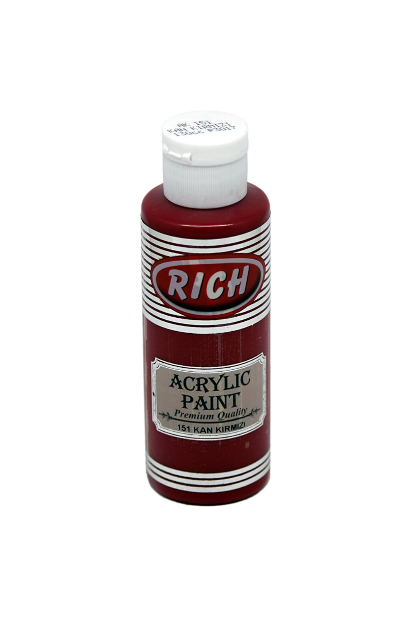 Rich Akrilik Boya 120 cc Kan Kırmızı 151 Dekorasyon ve sanatsal hobi çalışmalarında kullanılan boyalardır.; Su ile kolayca inceltilebilir.; Temizlemesi kolay.; Çabuk kuruma süresi ile pratik kullanıcı deneyimi.; Renkler birbiri ile kolayca karıştırılabilir.; Ahşap, cam, seramik, tuval ve polyester gibi farklı yüzeylerde rahatlıkla kullanılabilir.; Hobi meraklılarının sıklıkla karşılaştığı renklendirme sorunu Rich akrilik boya ile çözülüyor.; “Tamam da, Rich akrilik boya ile ne boyanır ?” sorusunu sorduğunuzu duyar gibiyiz ve bunun cevabı çok basit; “HER ŞEY!”.; Rich akrilik boya ile aklınıza gelebilecek her yüzeyi boyayabilir, istediğiniz rengi seçerek zengin renk kataloğundan faydalanabilirsiniz.; Bidoluhobi portföyündeki Rich akrilik boya renk kataloğuna bakıp, beğendiğiniz renkleri seçerek dilediğiniz kadar sipariş verebilirsiniz.; Hatta ve hatta, bir renkle yetinmeyip kendinize Rich akrilik boya seti bile oluşturabilirsiniz ve istediğiniz her yüzeyi sıkıntı yaşamadan boyamanın rahatlığına varabilirsiniz.; Sanat icra edenlerin de sıklıkla kullandığı akrilik boyayı, her yüzeyi kolaylıkla boyarken kullanabileceğiniz gibi, amatör veya profesyonel resim yapmak için de kullanabilirsiniz.; Özellikle amatör olarak resim yapan veya her düzeydeki resim kursu öğrencileri için vazgeçilmez olan kaliteli akrilik boya, yaratım sürecinize kesinlikle kolaylık sağlayacaktır.; En uygun akrilik boya çeşitli renk seçeneklerine bidoluhobi mağazamızdan ulaşabilirsiniz.; AKRİLİK BOYA NEDİR VE NASIL KULLANILIR? Akrilik boya, hammaddesi elyaf olan, başta da belirttiğimiz gibi özellikle hobi meraklılarının renklendirme konusunda hayatını kurtaran, asla koku yapmayan ve kolay uygulanabilir olması sebebiyle sıklıkla tercih edilen bir boya türüdür.; Kolay kuruyan akrilik boya ile istediğiniz ürünü boyayıp vakit kaybetmeden kullanmaya başlayabilirsiniz.; Siparişleriniz bidoluhobi tarafından özenle hazırlanır ve en kısa sürede ilgili kargo firmasına teslim edilir.
