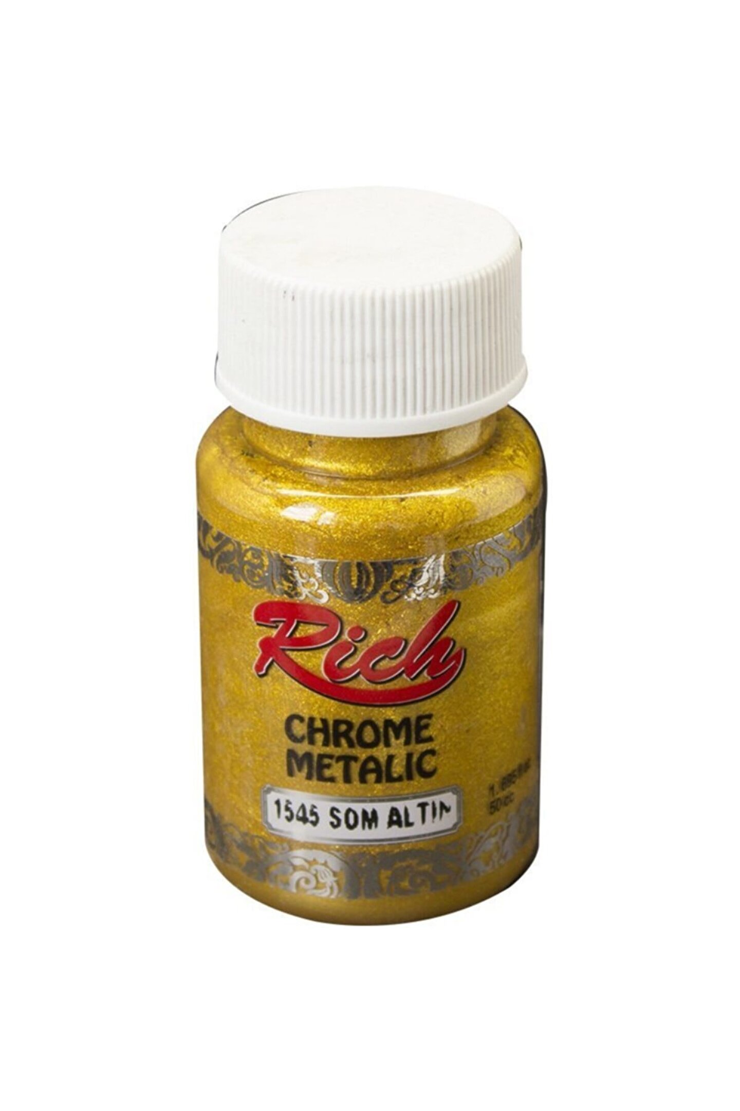 Rich Chrome Metalik Boya 60 cc Som Altın Rich Chrome Metalic dekoratif amaçla kullanılan Su Bazlı boyalardır Kuruduğunda çok yüksek ışıltı ve sedefli görünüm kazandırır İnceltme yapılmaz