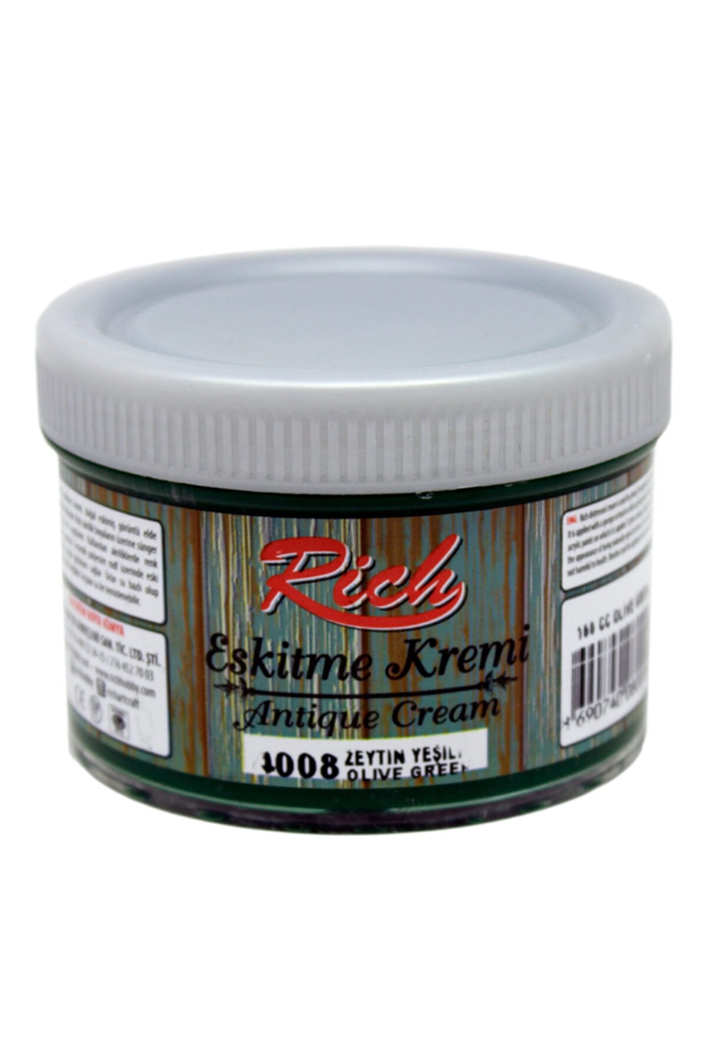 Rich Eskitme Kremi Hacim: 150 cc Rich eskitme kremi, akrilik boya ile boyanmış yüzeylerde sür sil tekniği ileantik bir görünüm yaratmak için kullanılır. ; Eskitme yoğunluğunu kendinizbelirleyebildiğiniz için, tek bir renk eskitme kremi kullanarak bile farklı tonlardaeskitme efekti elde edebilirsiniz. ; Rich eskitme kremi su bazlı ve kokusuzdur.;