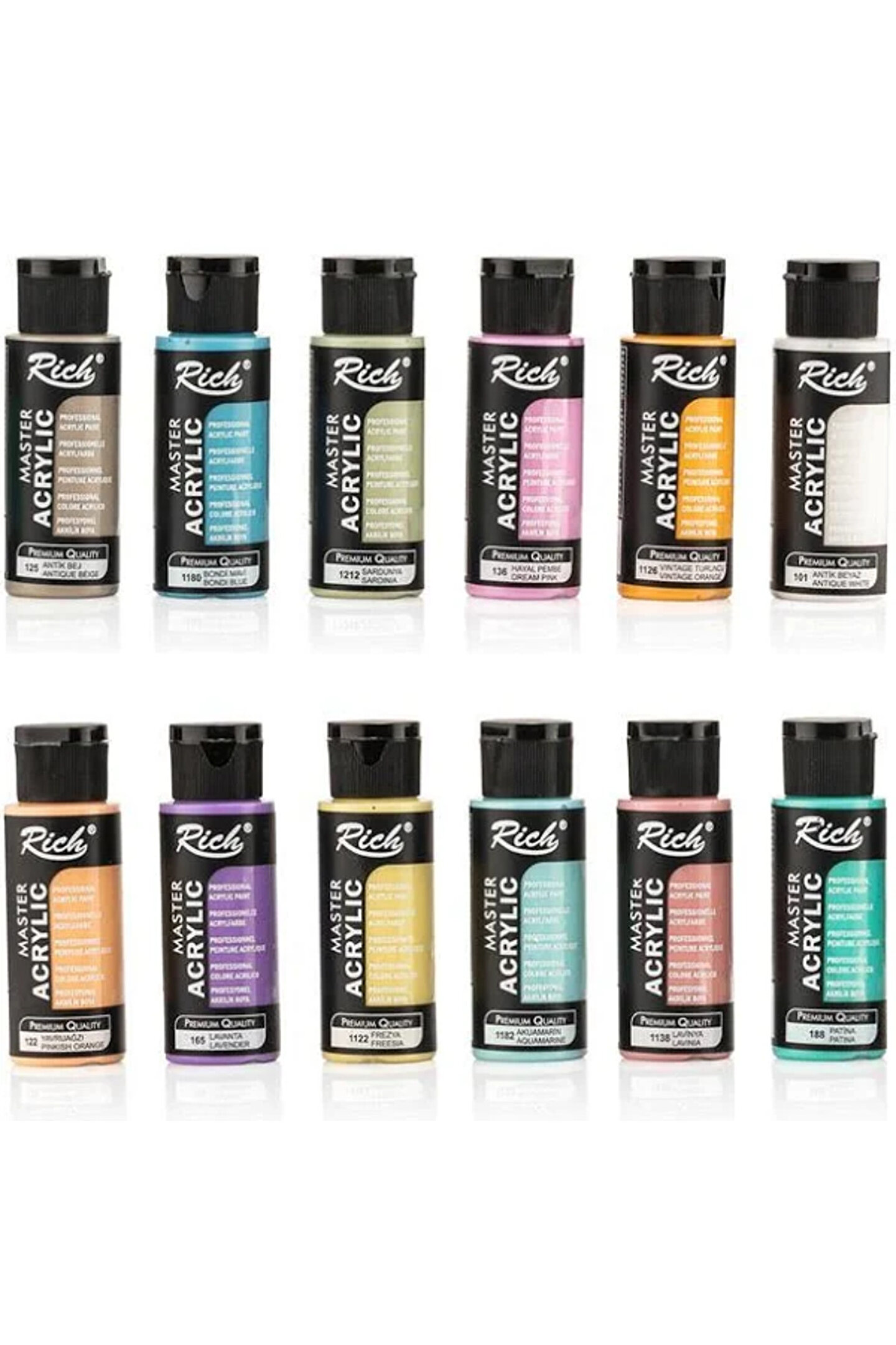 Ürün dayanıklı malzemeden üretilmiştir.; Ürün günlük kullanıma uygundur.; Ürün çocukların kullanımı için uygun değildir ve çocukların ulaşamayacağı yerlerde saklanmalıdır Akrilik boya; Tuval ahşap polyester kağıt seramik ve tüm yüzeylerde yüksek örtücü özelliktedir; Kullanmadan önce şişeyi çalkalayınız; Su bazlı; MASTERMIX PASTEL 12 COLOR x 60cc - YAVRUAĞZI/PINKISH OTANGE - LAVANTA/LAVANDER - FREZYA/FREESIA - AKUAMARİN/AQUAMARINE - HAYAL PEMBE/DREAM PINK - BONDİ MAVİ/BONDI BLUE - ANTİK BEYAZ/ANTIQUE WHITE - TURUNCU/ORANGE - LAVİNYA/LAVINIA - SARDUNYA/SARDINIA - PATİNA/PATINA - ANTİK BEJ/ANTIQUE BEIGE