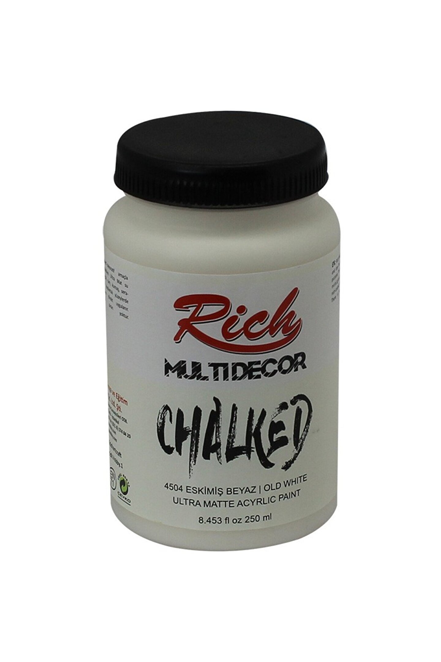 Rich Multi Decor Chalked 250 cc Alaçatı 4506 Rich multi decor chalked akrilik boya, istediğiniz yüzeyde kullanılabilir, ağır örtücü, ultra mat kadifemsi, su tabanlı akrilik boyadır.; Ahşap, mdf, metal, cam, kumaş, seramik gibi vernikli ya da verniksiz tüm yüzeylere direkt olarak uygulanabilmektedir.; Zımpara ya da astar boya gerektirmez.; Fırça izi bırakmaz.; Sulandırılma ihtiyacı yoktur.; Kat aralarında ortalama 6-8 saat beklenmelidir.; Rich Multi Decor Chalked Nasıl Kullanılır? Rich Multi Decor Chalked ile mobilyalarınızı rahatlıkla boyayabilirsiniz.; Zımpara yapılmasına gerek olmayan bu hobi boyası aynı zamanda kokusuz olmasıyla da dikkat çeken ve rakiplerine açık ara fark atan birinci kalite bir boyadır.; Akrilik yapıdadır.; Rich Multi Decor Chalked ile siz de kendi evinizin mimarı olabilirsiniz.; Multi surface boyalar her yüzeyde rahatlıkla uygulanabilen ve eşyalarını geri dönüşüm için özel olarak hazırlanmış kokusuz ve özel bir boya grubudur.; Astar atmanıza gerek kalmaz.; Boyama işleminden sonra Rich Su Bazlı Vernik ürünü ile 2 kat verniklenmelidir.; Unutmayın ki boyaya su katmanın amacı boya miktarını arttırmak değil fırçanın boyarken yüzeyde daha rahat kalmasını sağlamaktadır.; Boyama işlemi bittikten sonra ortalama 2 gün geçince Rich Su bazlı vernik ile boyarsanız ve 2 kat arası bir gün beklerseniz maksimum verim i alabilirsiniz.; Rich Multi Decor Chalked boyalar ile su kullanımınıza gerek kalmaz, çünkü boya zaten yüzeyde fırça ile akıcı bir kıvamdadır.; Siz de rich multi decor chalked ile eski mobilyalarınızı yenileyebilir ve kendi evinizin mimarı olabilirsiz! Unutmayın ki Rich Multi Decor Chalked boyalar tüm yüzeyler için uygulanabilir.; Geniş yüzeylerde maxi ipek rulo veya kadife rulo kullanabilirsiniz.; Aynı zamanda ufak alanlar için rich sünger ponpon fırçalar işinizi büyük ölçüde görecektir.; Aynı zamanda ponpon fırçalar ile boyama yaparken klasik fırçalara göre çok daha az yüzey izi bırakmış olursunuz.; Daha fazla hobi boyama ürünü için mağazamızı gezinebilirsiniz.; Rich multidecor chalked akrilik boya, istediğiniz yüzeyde kullanılabilir, ağır örtücü, ultra mat kadifemsi, su tabanlı akrilik boyadır.; Ahşap, mdf, metal, cam, kumaş, seramik gibi vernikli ya da verniksiz tüm yüzeylere direkt olarak uygulanabilmektedir.; Zımpara ya da astar boya gerektirmez.; Fırça izi bırakmaz.; Sulandırılma ihtiyacı yoktur.; Kat aralarında ortalama 6-8 saat beklenmelidir.; Siparişleriniz bidoluhobi tarafından özenle hazırlanır ve en kısa sürede ilgili kargo firmasına teslim edilir.