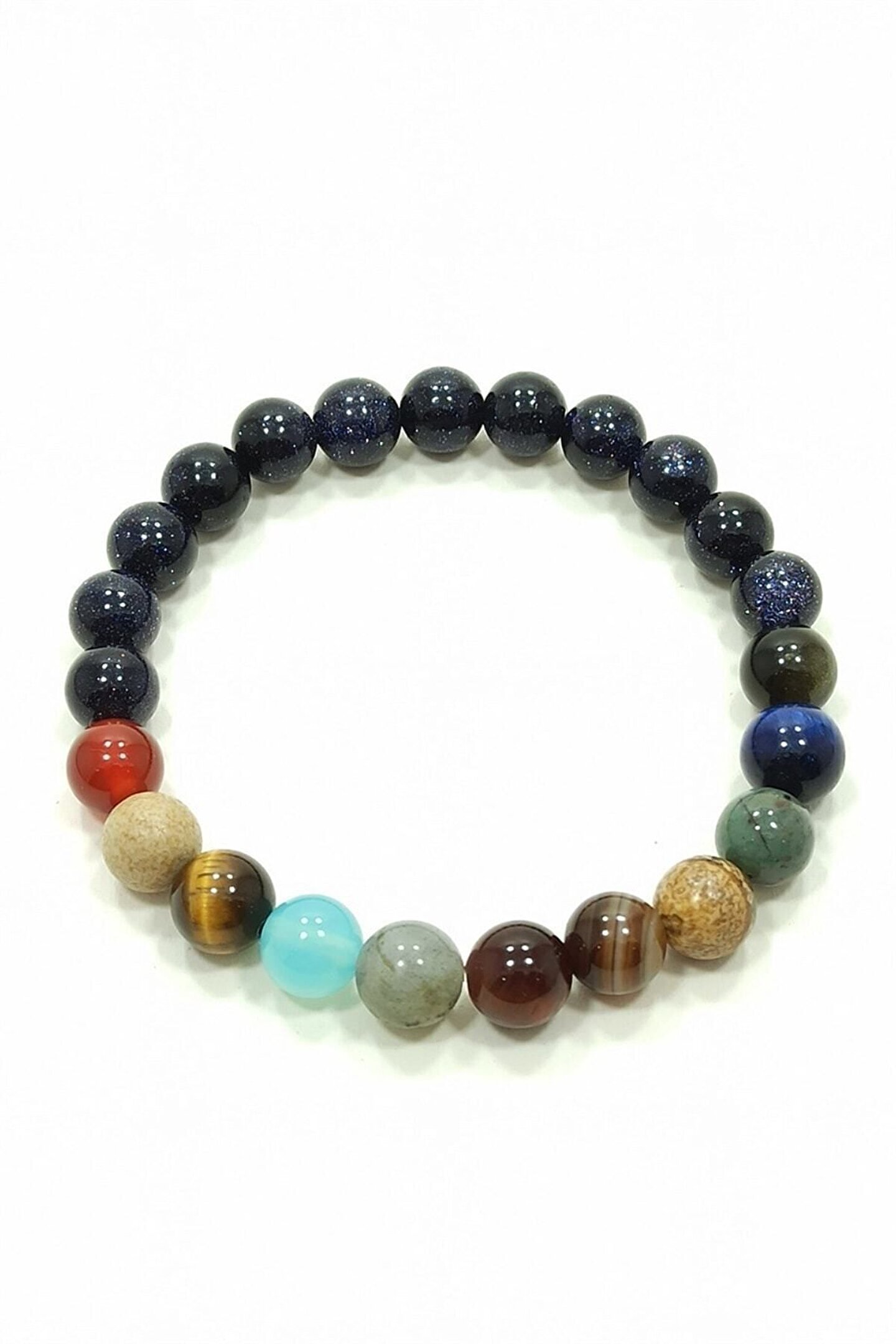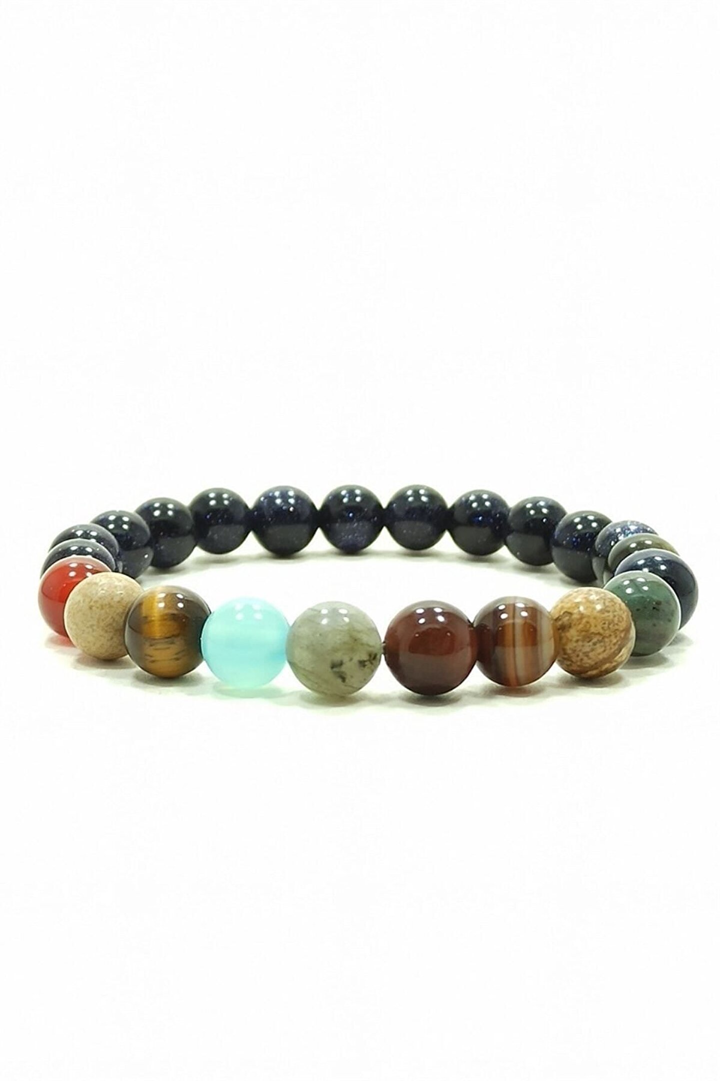 Güneş sistemimizin büyüleyici güzelliğini bileğinizde taşıyabileceğiniz, doğal taş gezegenlerin zarif tasarımla buluştuğu Rio Gezegen Bileklik'i keşfedin.; Doğal taşların eşsiz dokusu ve parlaklığını yansıtan bu bileklik, hem şıklığı hem de doğallığı bir arada sunuyor.; Güneş sistemimizin gezegenlerini temsil eden bu bilezik ile hem kendinizi ifade edin hem de doğanın simgelerini bileğinizde taşıyarak fark yaratın.; Özel günlerinizde veya günlük kullanımınızda tercih edebileceğiniz bu bileklik, hem kendinize hem de sevdiklerinize hediye olarak da düşünebilirsiniz.; Rio Gezegen Bileklik ile doğanın güzelliğini parmak uçlarınıza taşıyarak stilinizi tamamlayın.;