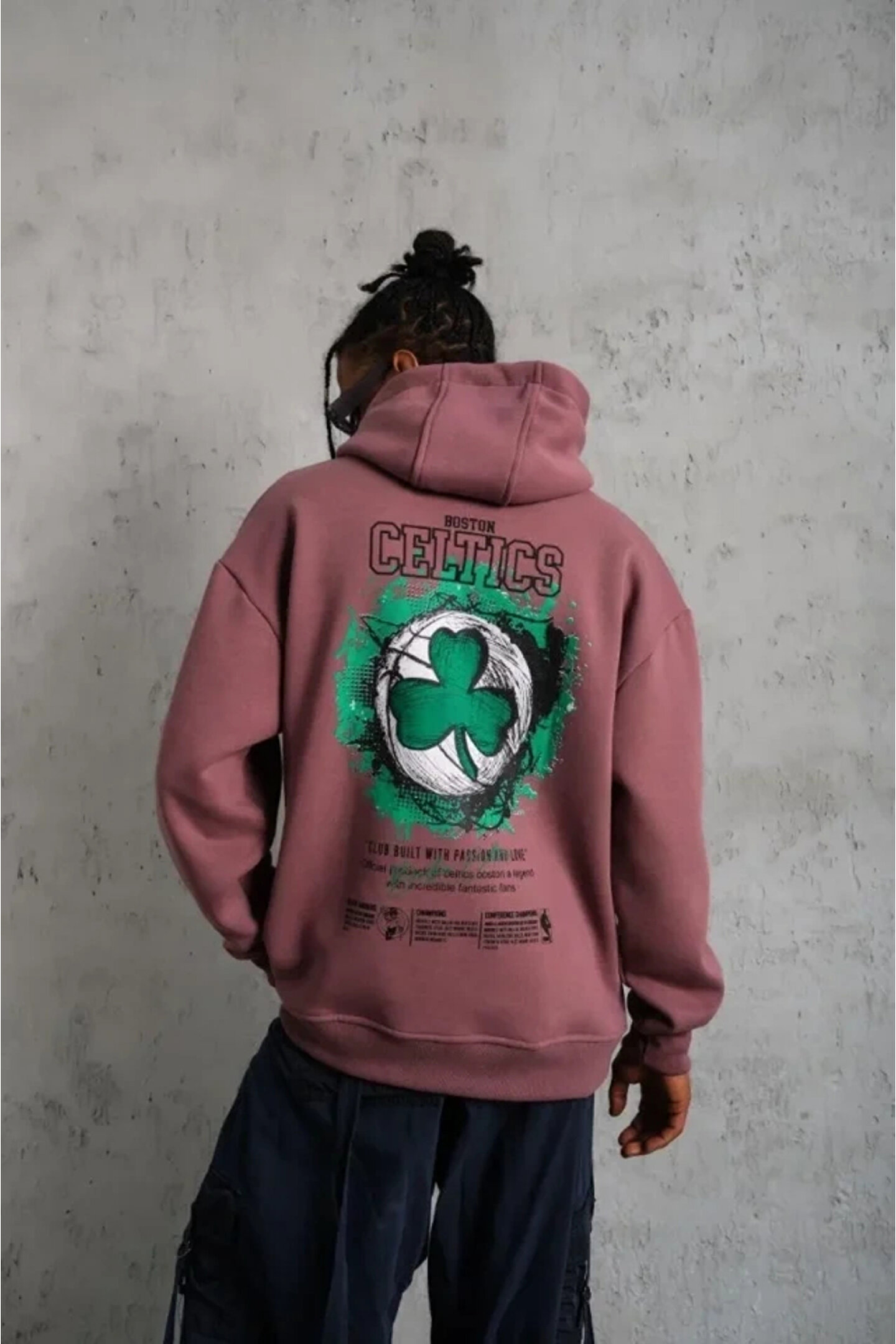 Robahood Erkek Baskılı Kapüşonlu Ve Kordon İpli Sweat - Gül Kurusu