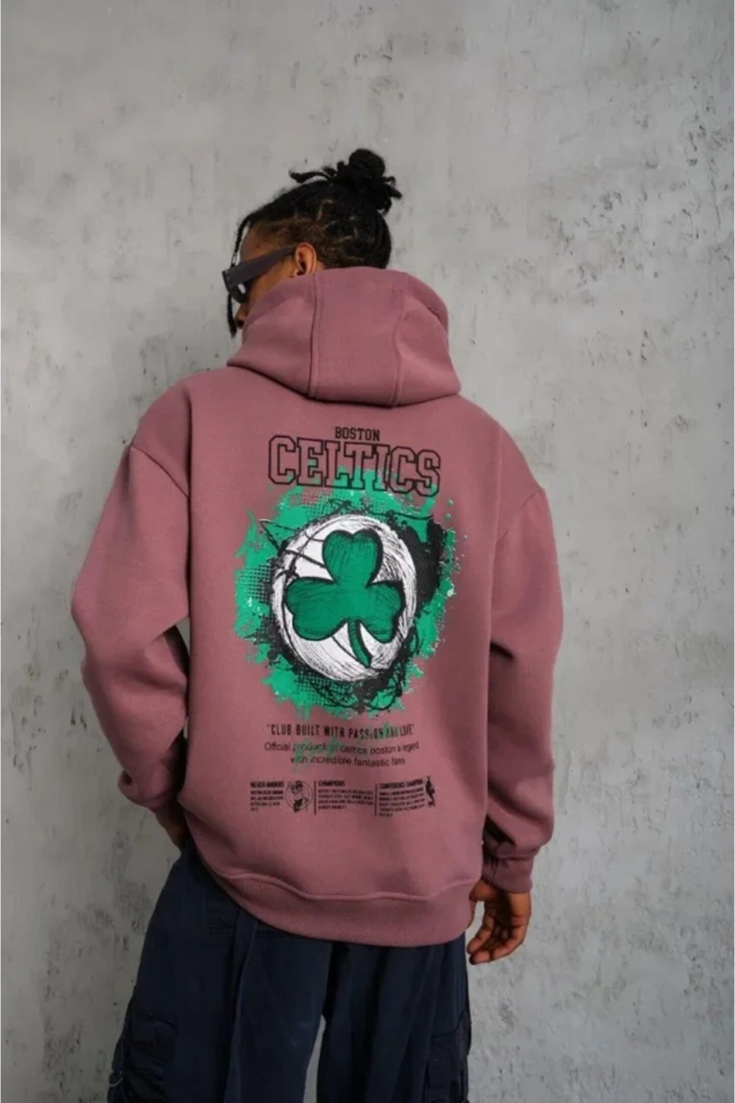 Robahood Erkek Baskılı Kapüşonlu Ve Kordon İpli Sweat - Gül Kurusu