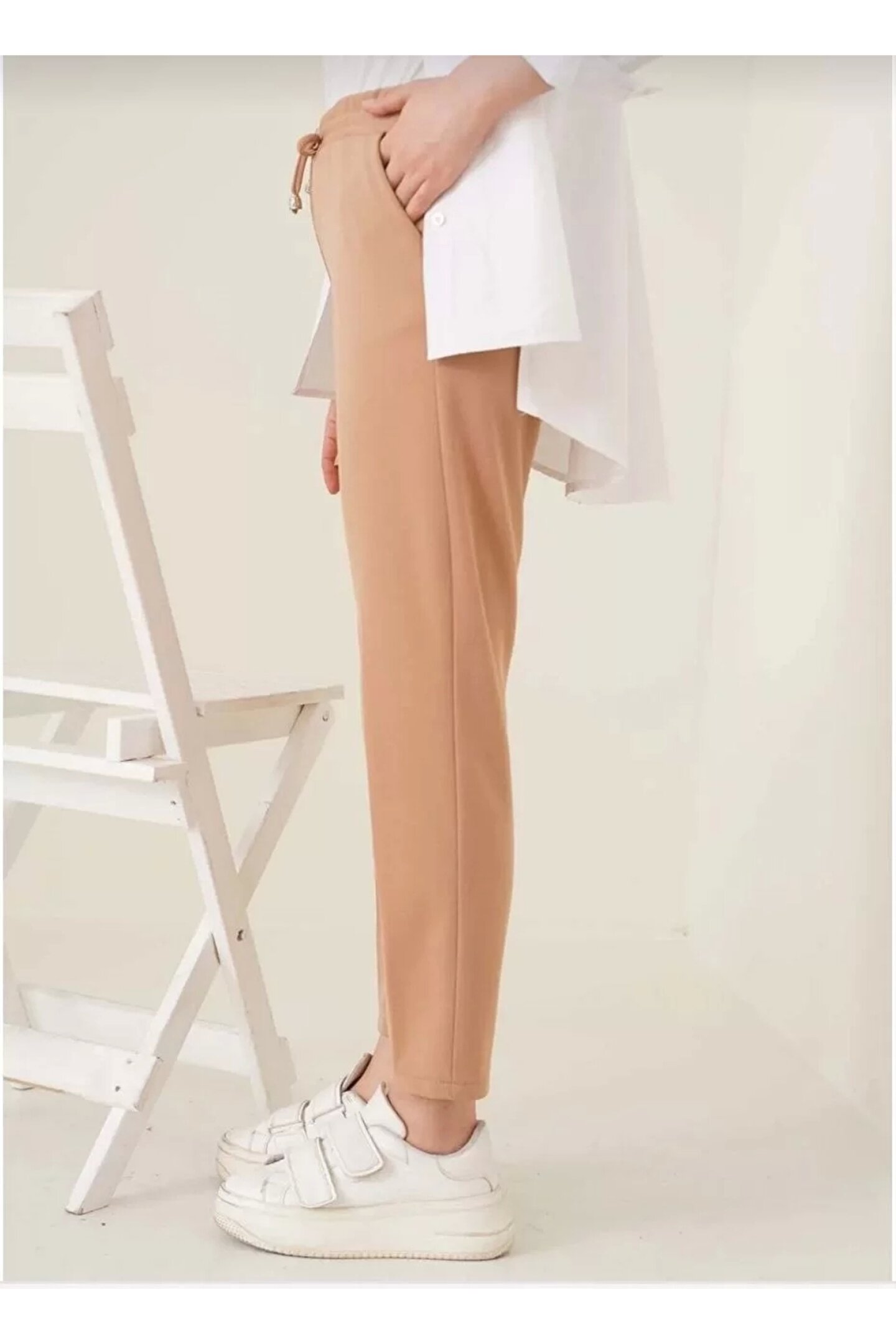 - Rahatlık ve şıklığı bir arada sunan kadın eşofman pantolonu, günlük kullanım için idealdir.; - Bağlama veya bağcık detayı ile kolayca ayarlanabilir bel yapısı sayesinde konforlu bir deneyim sağlar.; - Çift cepli tasarımı ile pratik kullanım imkanı sunar; küçük eşyalarınızı yanınızda taşımanız için mükemmeldir.; - Genç yaş grubuna hitap eden dinamik ve modern görünümüyle her ortamda tarzınızı korumanızı sağlar.; - Lastikli bel kısmı sayesinde gün boyu rahat hareket etme özgürlüğü tanır.; - Belirtilmemiş kumaş tipi ile farklı dokulara uyum sağlayarak çeşitli kombin seçenekleri yaratmanıza olanak tanır.; - TR menşeli olmasıyla yerel üretim kalitesini yansıtırken, tüm sezonlarda tercih edebileceğiniz esneklikte tasarlanmıştır.; - Normal boy kesimiyle vücut hatlarınıza uyum sağlayarak konforlu bir oturuş sunar.; - Dar paça tasarımının getirdiği modern siluetle trendleri takip ederken aynı zamanda rahatlığından ödün vermezsiniz.; - Düz deseniyle sadelikten yana olanların beğenisini kazanırken, regular kalıp ile vücudu sarmayan ama sıkıştırmayan ideal yapıya sahiptir.; - Pamuklu materyali cildinizle dosttur ve nefes alabilir özellikteki yapısıyla gün boyu ferahlık hissi verir.; - Casual/günlük ortamlara uygun olarak tasarlanmış bu pantolonla her anınıza uyum sağlayacak şekilde stilinizi tamamlayın.