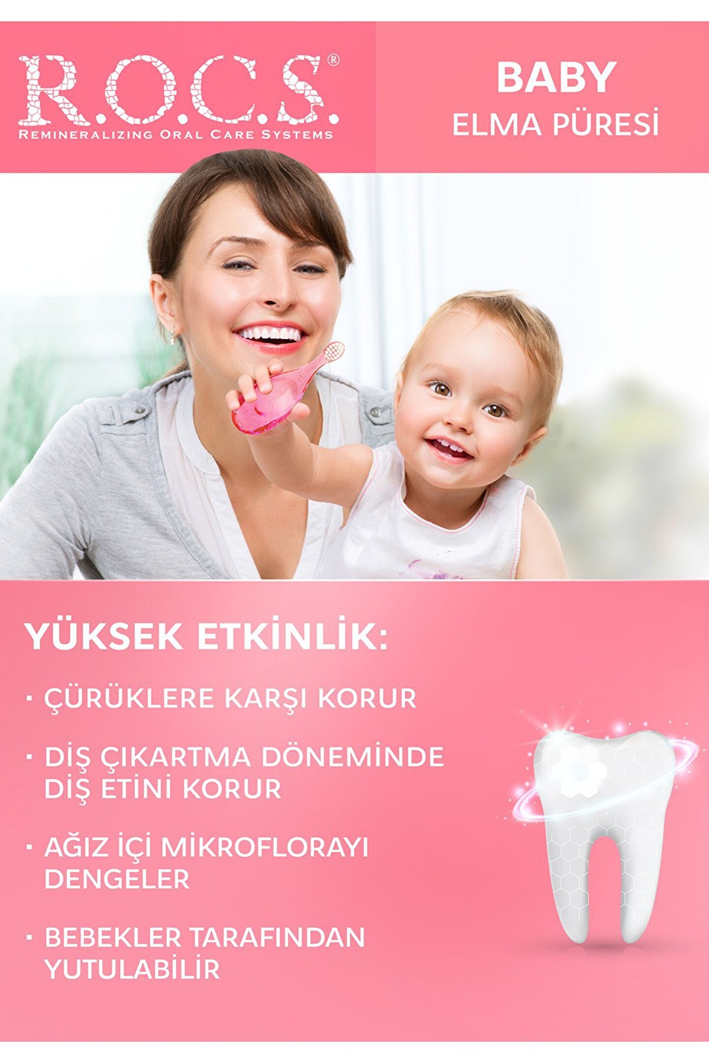 Ürün Detayları · İlk dişten itibaren bebeklerin ağız bakımı içindir. ; · Bebeğinizi mutlu edecek elma püresi aroması doğal içeriklerden elde edilmiştir. ; · Diş macunu yutulabilir özelliktedir. ; · R.O.C.S. ; Baby Elma Püresi diş macunu içeriğindeki Ksilitol (%6) ve aljinat sayesinde çürüklere karşı korumaya yardımcıdır. ; · Ayva ekstresi diş çıkartma döneminde bebek dişetlerinin rahatlamasına ve korunmasına yardımcı olur.;