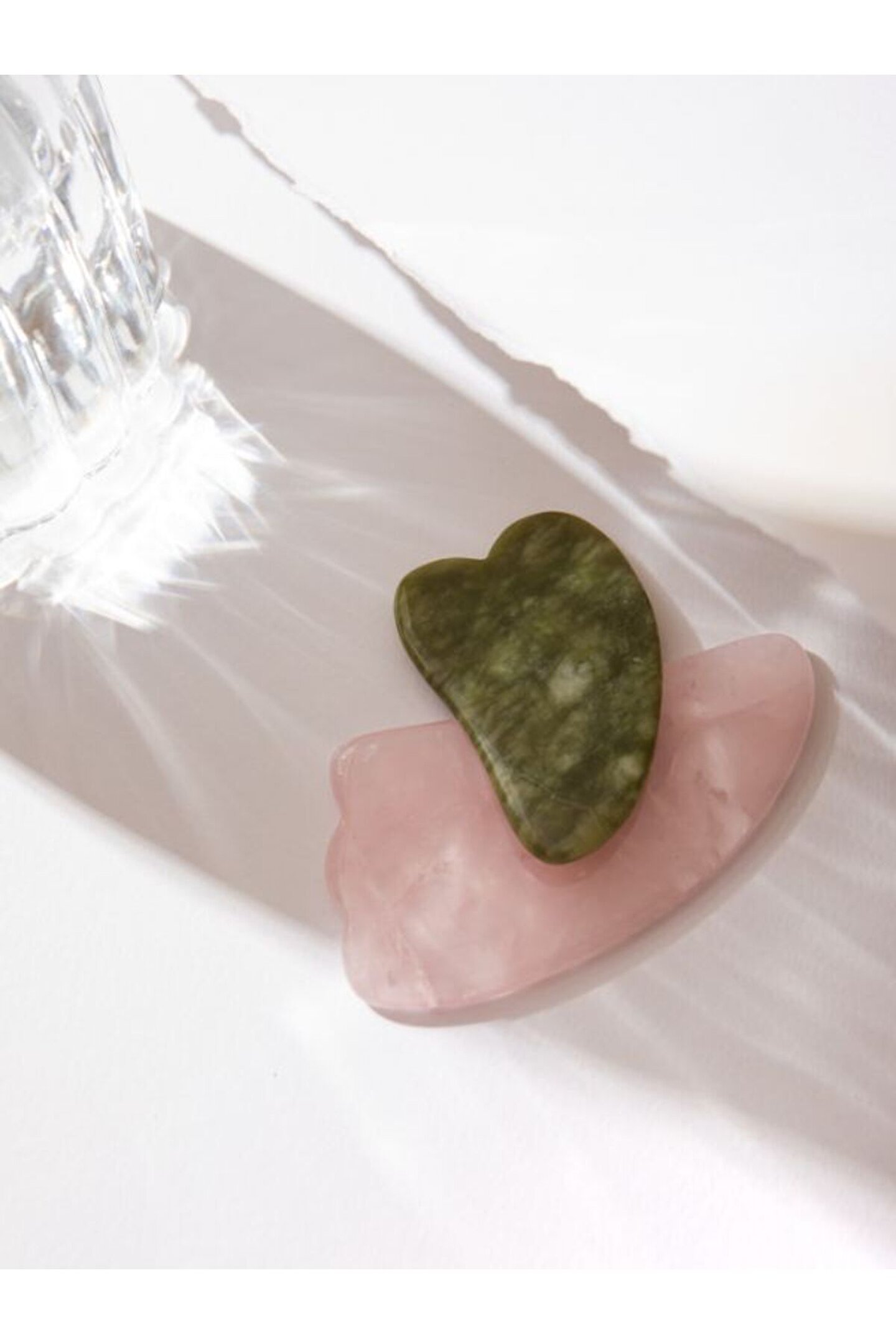 %100 Yeşim (Jade) taşıdır. ; Gua Sha, genellikle yeşim taşı ve rose kuvars gibi değerli taşlardan yapılan yuvarlak hatlara sahip vücut masaj aletleridir. ; 'Gua' ovmak anlamına gelir ve 'sha', kullanımdan sonra cilt yüzeyinde kalan kızarıklığın bir tanımıdır. ; Gua Sha masaj aletini vücutta kullanarak cilt yüzeyinde kan dolaşımı hızlandırılmasına yardımcı olur. ; Gua Sha, sırt, omuz, boyun ve bacak ağrılarını gidermeye yardımcı olmak için de kullanılabilir. ; Gua Sha tüm vücuda uygulanabilir. ; Kalp şeklindeki Jade (Yeşim) Gua Sha, Uygulanan bölgede "lifting” etkisi sağlar. ; Lenfatik dolaşımı hızlandırır ve kan dolaşımını artırır. ; Oksijenin cilt katmanlarına derinlemesine nüfuz etmesini teşvik eder. ; Ciltte sıkışmış toksinlerin salınmasına ve kolajen üretiminin uyarılmasına yardımcı olur. ; Düzenli kullanımda kırışıklıkların görünümünü azaltır ve cildin elastikiyetini arttırır. ; Genel cilt görünümünüze ışıltı ve parlaklık sağlar. ; Kullanımı Root Aromaterapi %100 doğal Sabit Yağ serisinden cilt tipinize uygun bir yağı cildinize uyguladıktan sonra çene hattı, yanak, elmacık kemiklerin, boyun, alın, kaş ve göz altlarına 2-3 dk boyunca uygulayın. ; Çene ve yanak bölgesi için çene hattından kulak memesi hizasına doğru uygulayın. ; Göz altı için nazikçe gözünüzün iç köşesinden dışa doğru hareket ettirin. ; Çift Başlıklı Facial Roller ve Gua Shanın rahatlatıcı ve sıkılaştırıcı etkisini artırmak için buzdolabında saklayınız. ; Çift Başlıklı Facial Roller ve Gua Sha, genel cilt görünümünüze etkisini arttırmak için Root Aromaterapi %100 doğal Sabit Yağ serimizi kullanabilirsiniz. ; Doğal taş roller ve gua shalar cildinize uyguladığınız yağ, serum ve krem gibi cilt bakım ürünlerinin emilimini arttırır. ; Temizlik Ürün yüzeyini kimyasal ve tahriş edici maddeler içermeyen sabunlu su ile nemlendirilmiş bir bez ile nazikçe siliniz. ; Not: Asla yüksek sıcaklıktaki su ile temizlemeyin. ; Ürünü direkt su içine daldırmayın.;