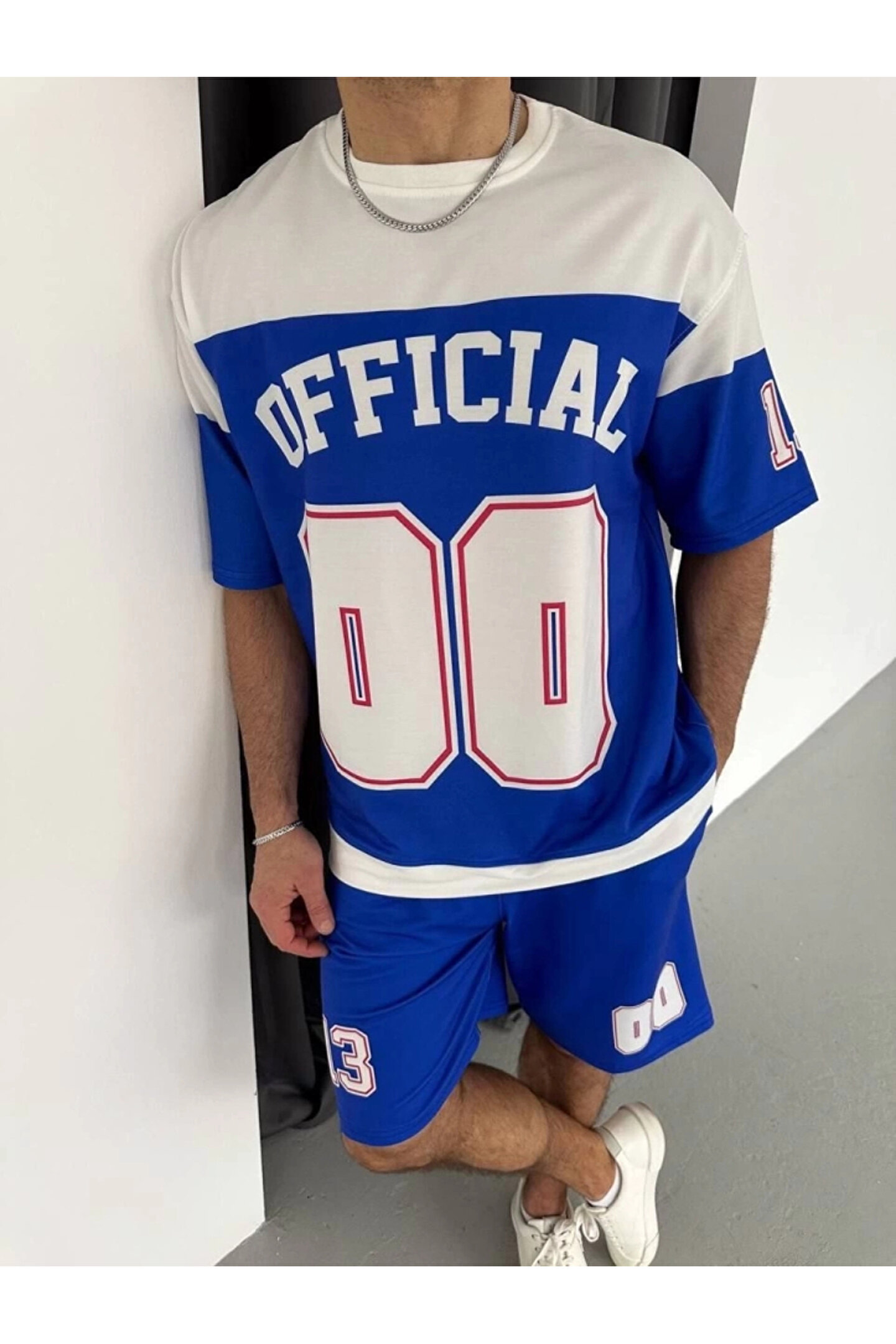 Dijital 00 Baskılı Şortlu Takım - Mavi