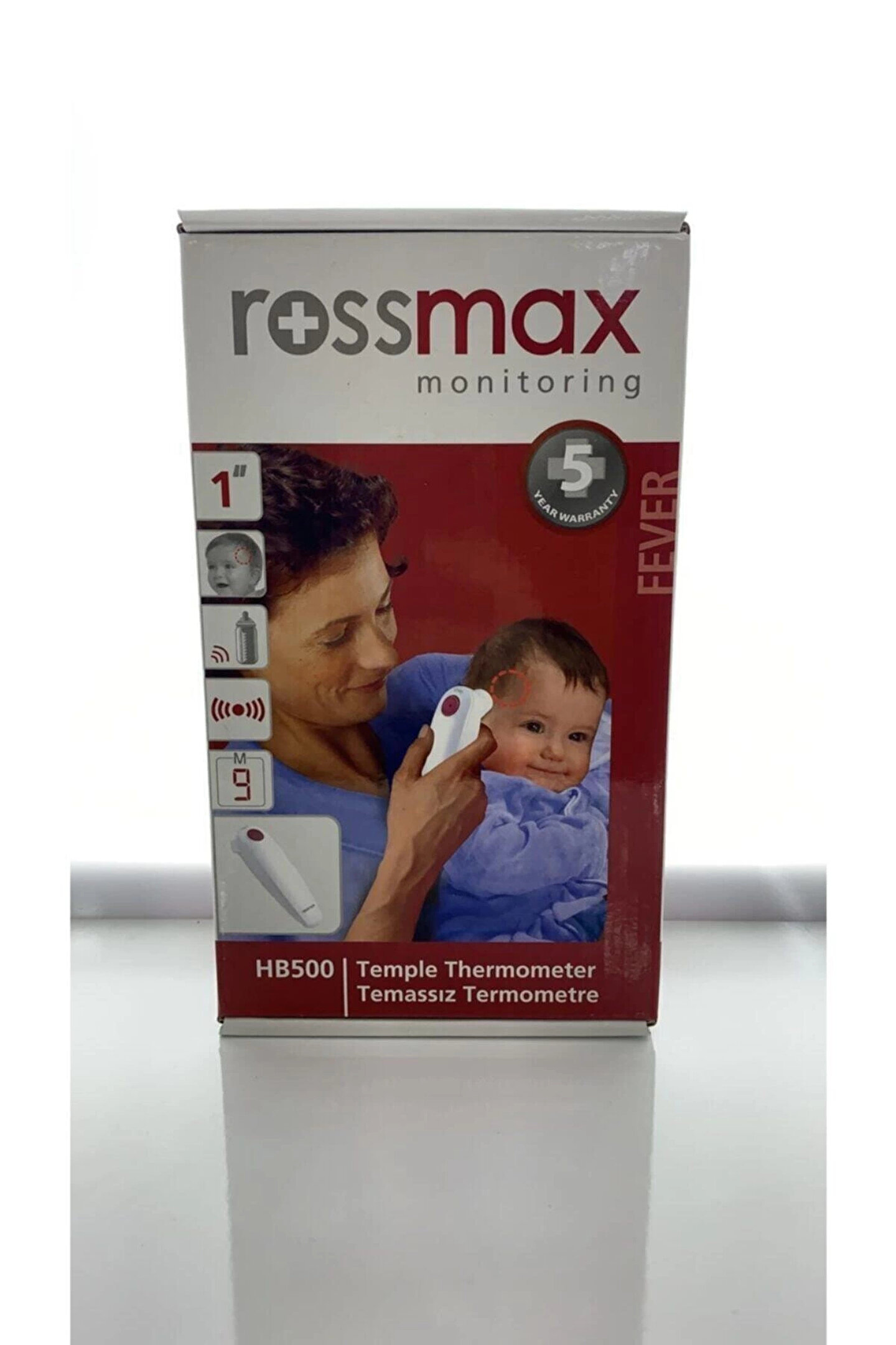 Medikaltec Genel Detaylar: Evde, Hastanede veya ihtiyaç duyulan heryerde yetişkin ve çocuk için vücut ısısını tespit etmek için kızılötesi dedektör kullanan Rossmax Temassız Termometre.; Aynı zamanda ortam ve nesne sıcaklığı ölçümü ile çok fonksiyonlu, nitelikli bir ürün olarak ürün gamımızda yerini alıyor.; Temel Özellikler: 1 saniyede ölçüm; Vücut sıcaklığı ölçümü; Nesne Sıcaklığı ölçümü; Ateş alarmı; 9 hafıza; Arka ışık; Otomatik kapanma; °C / °F seçimi; Düşük pil seviyesi bildirimi; Yanlış kullanım bildirimi; Menşei İsviçre; 5 yıl garanti;