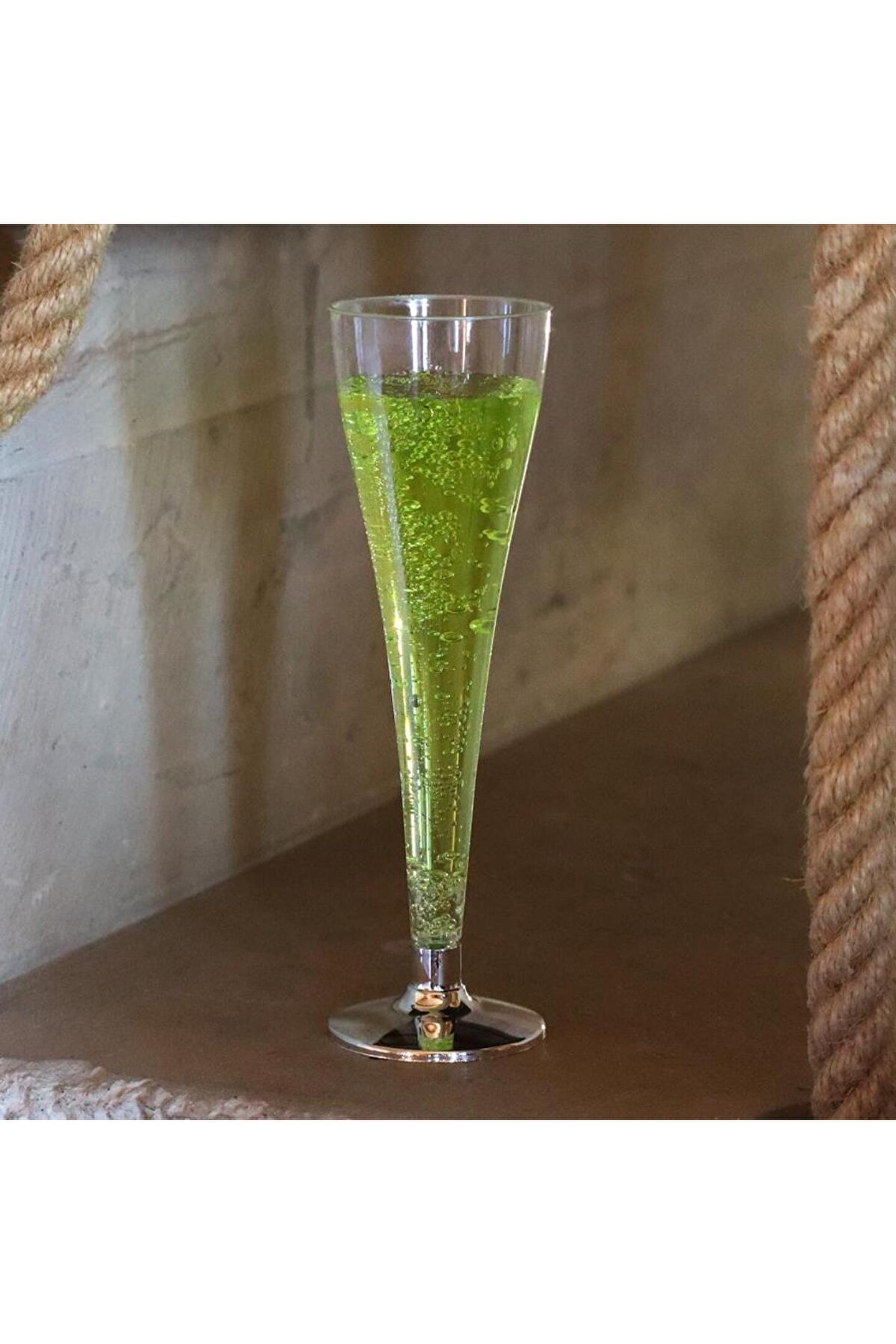 Yüksekliği 17,5 cm, ağız çapı 5 cm olan plastik şampanya kadehinin ayağı metalize altın renklidir. ; Parti, kokteyl gibi davetlerinizde kullanıp atabileceğiniz, hijyenik ve pratik bir üründür. ; Havuzbaşı, tekne gibi cam bardak kullanımının tercih edilmediği mekanlar için uygundur.;
