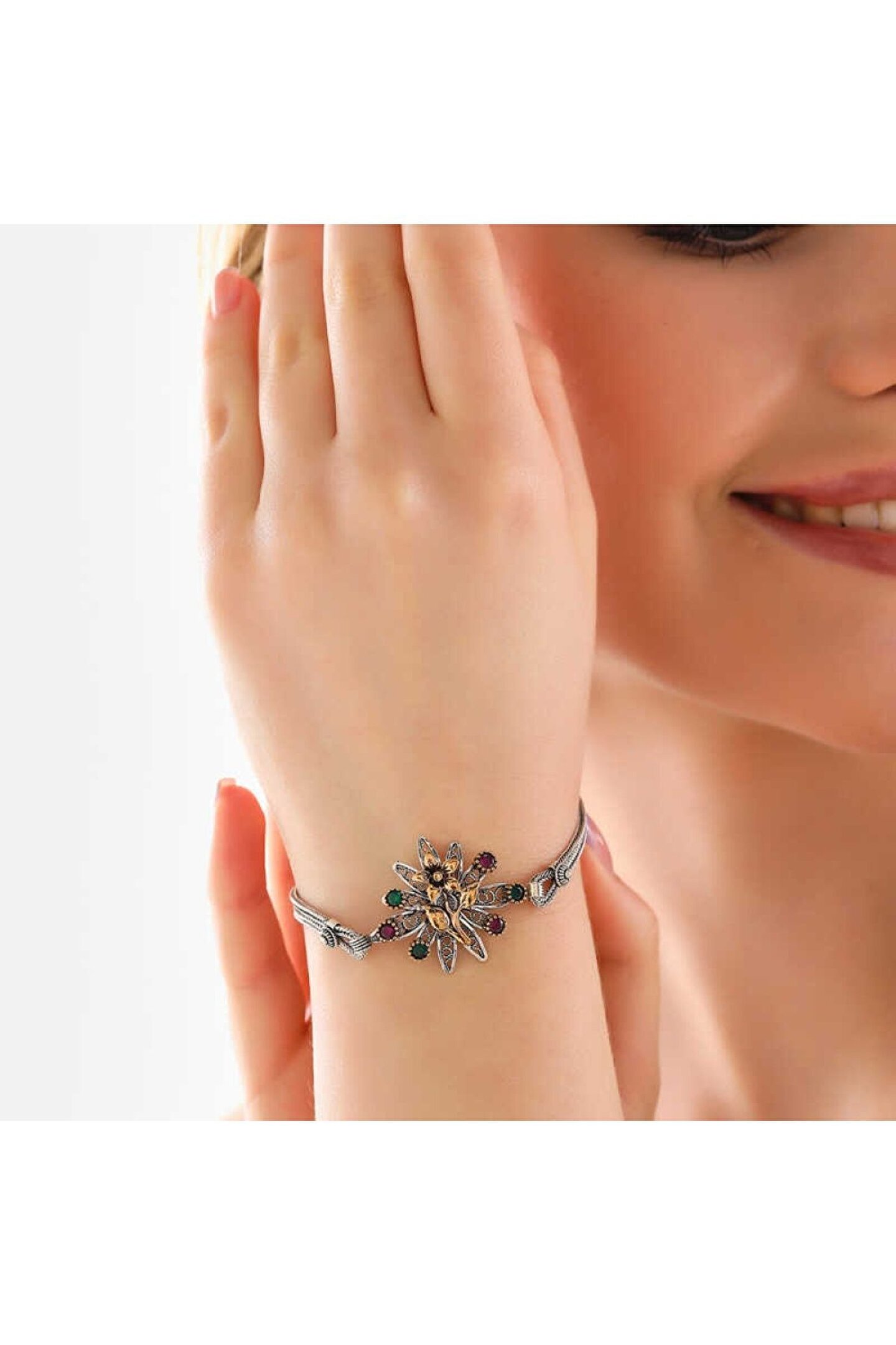 Gümüş Çiçek Otantik Kadın Bileklik