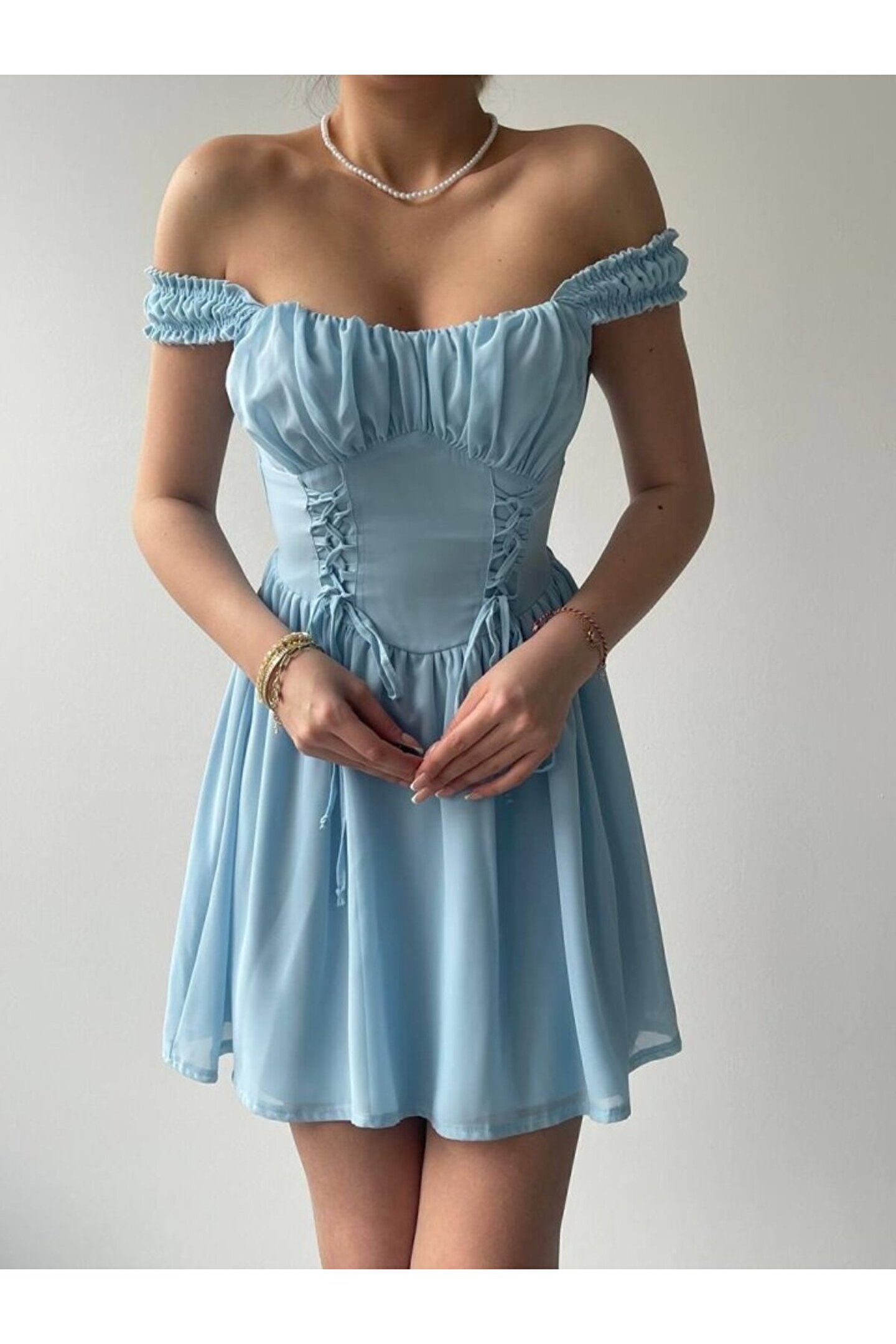 RuniqueHome Gökyüzü Moda Aria Büzgü Askılı Elbise