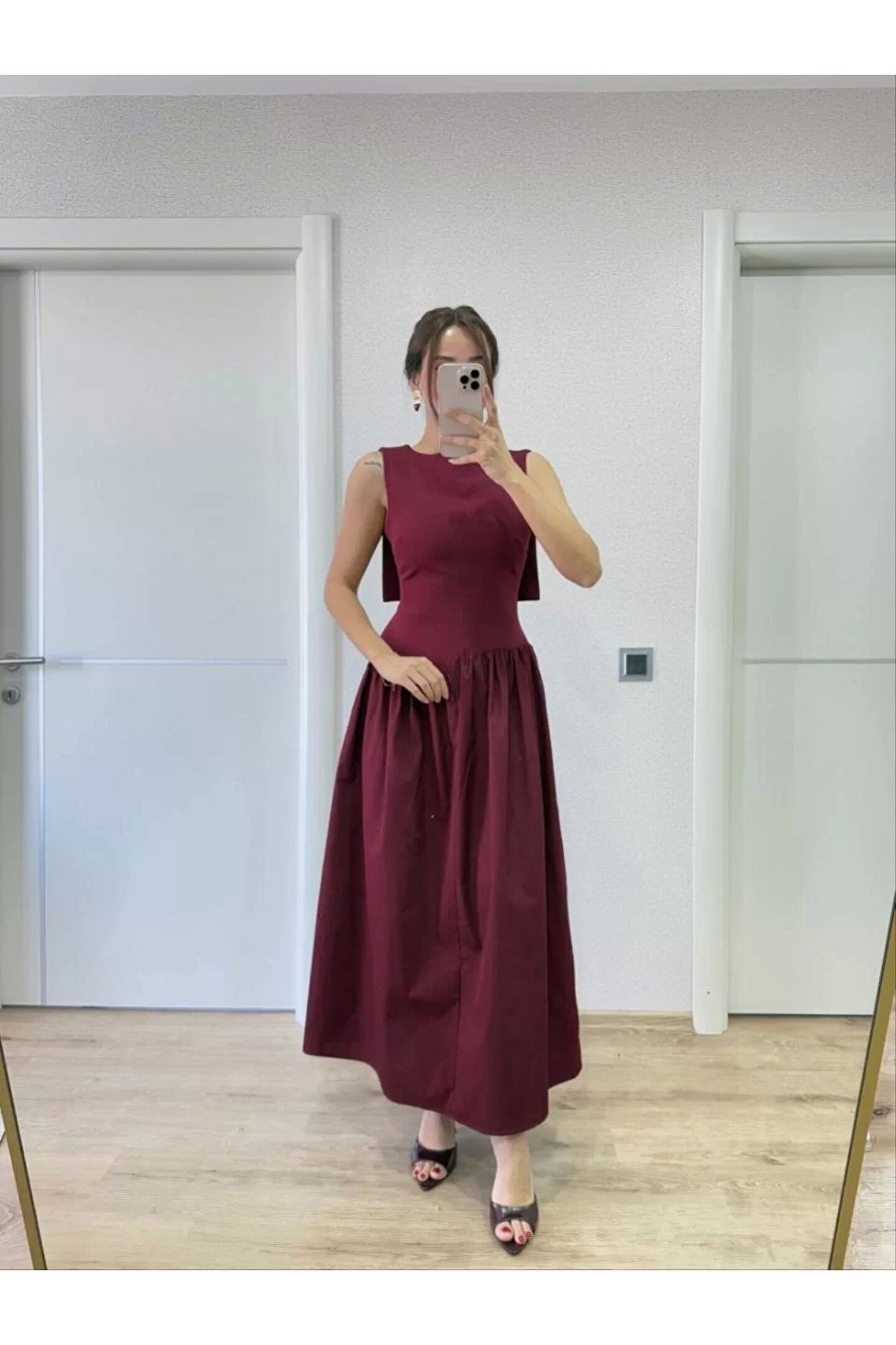 ruum fashions Krep Arkası Kanat Arka Ön Pens Detaylı Uzun Kadın Elbise - Siyah