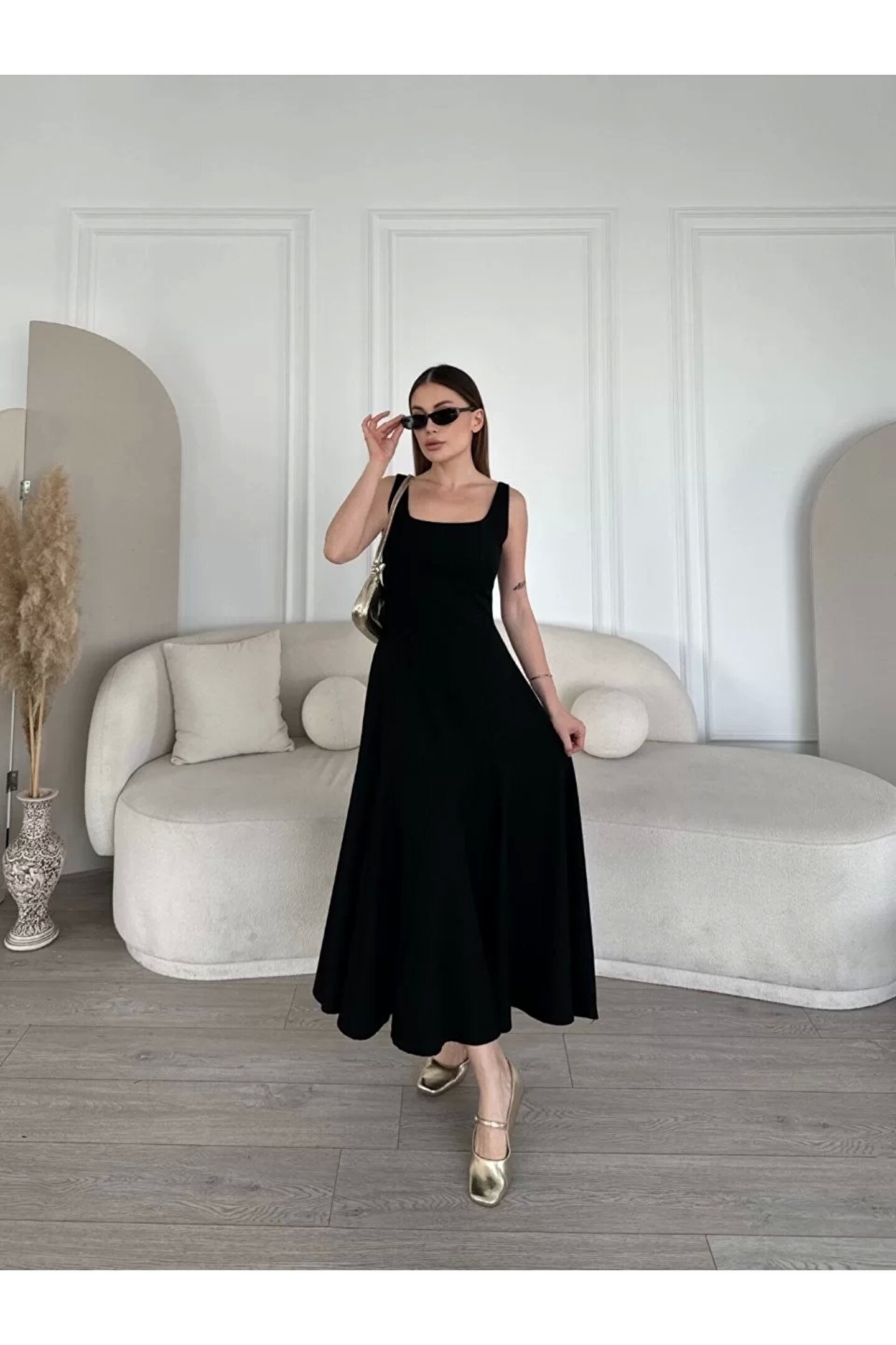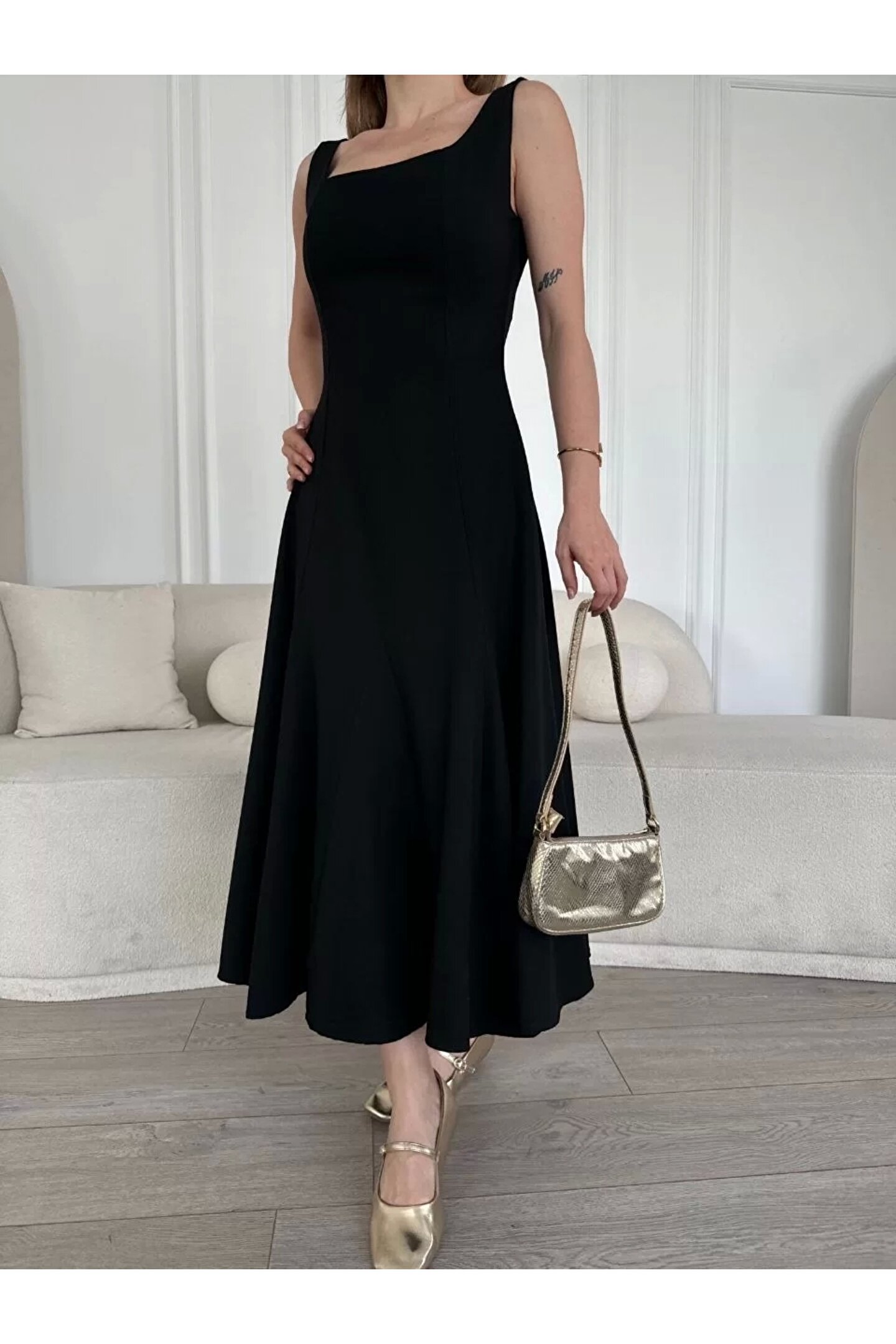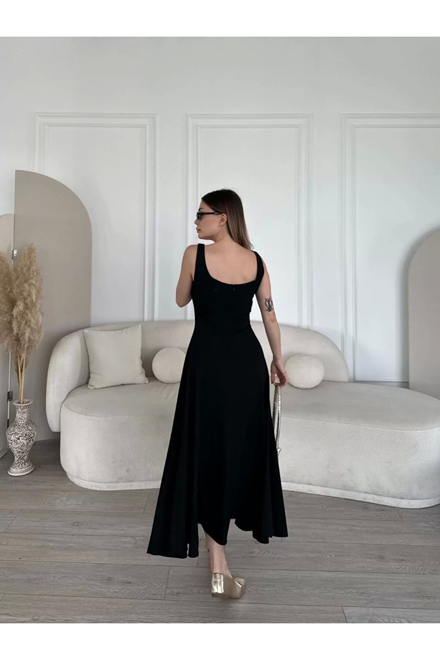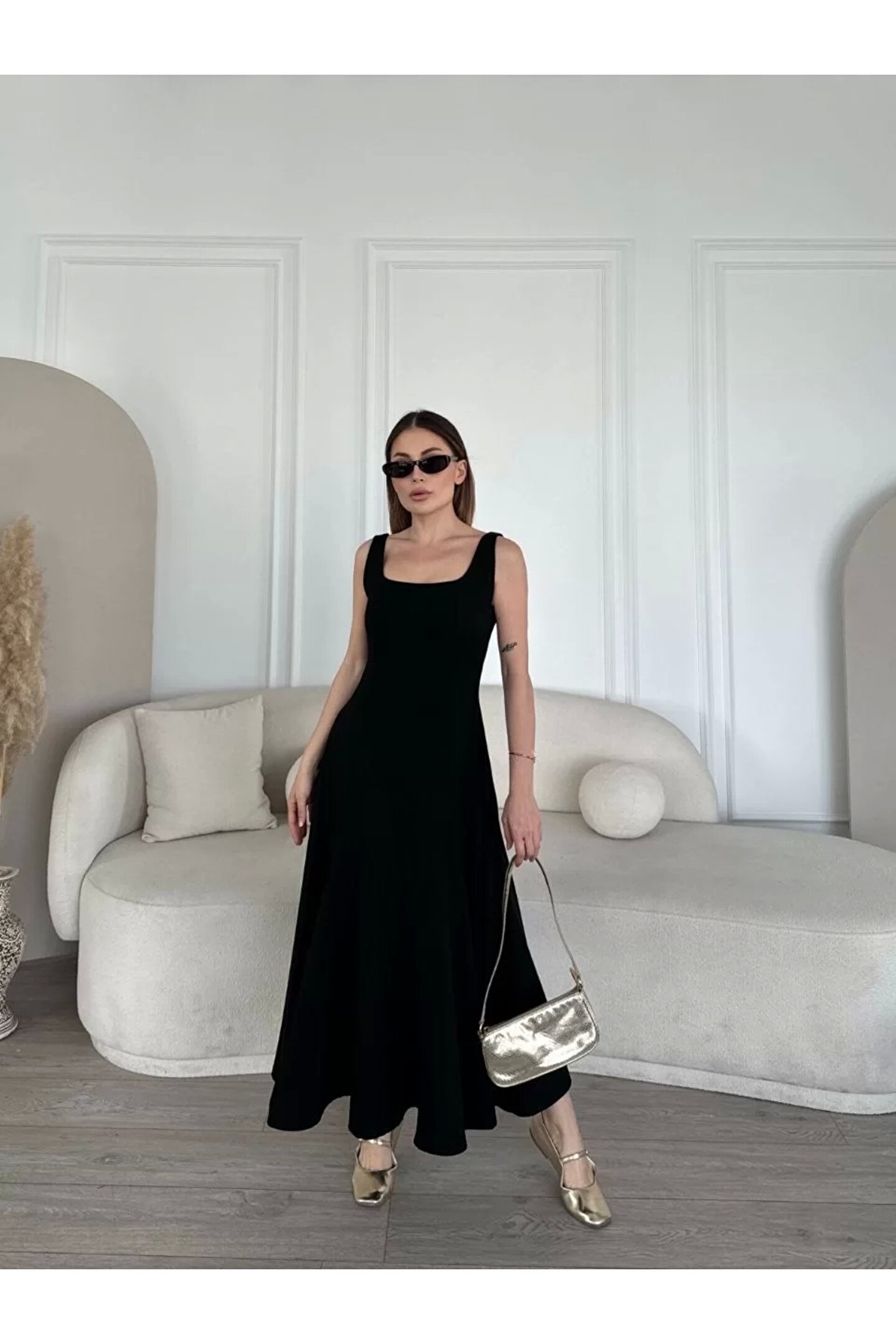 - Uzun boy kesimiyle zarif bir siluet sunar ve şıklığı ön plana çıkarır.; - TR menşeli üretim, kalite ve yerel dokunuşu bir arada sunar.; - Regular kalıp, rahat bir kullanım sağlarken vücut hatlarını nazikçe sarar.; - Yetişkin yaş grubuna hitap eden tasarımıyla her anınıza eşlik eder.; - Krep kumaş tipi, hafifliği ve nefes alabilir yapısıyla konforlu bir deneyim sunar.; - S bedeniyle tam oturumu yakalayarak feminen çizgileri ön plana çıkarır.; - Kadın ve kız kullanıcılar için ideal bir seçenektir; her gardıropta yerini almayı hak eder.; - Siyah rengiyle zamansız bir şıklık ve kolay kombinlenebilirlik sağlar.; - Düz deseni sayesinde sade ve sofistike bir görünüm elde edilir.; - Kolsuz tasarımı yaz ayları için idealdir; serin ve rahat bir kullanım sunar.; - Kare yaka detayı ile modern ve trend bir görünüm kazandırır.; - Type 1 yıkama talimatına uygun şekilde bakım yapıldığında uzun ömürlü kullanım vaad eder.