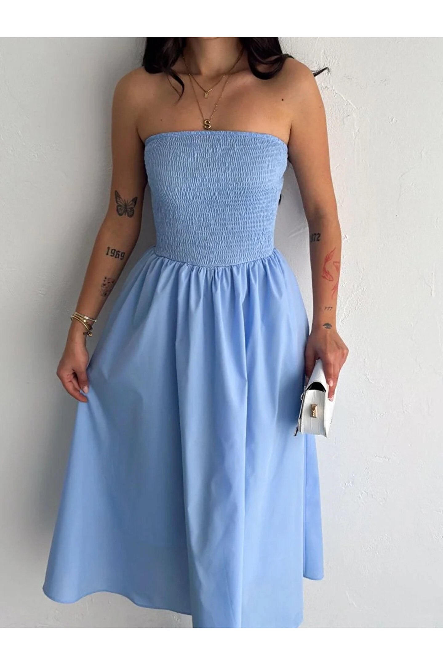 ruum fashions Straplez Pileli Elbise - Açık Mavi