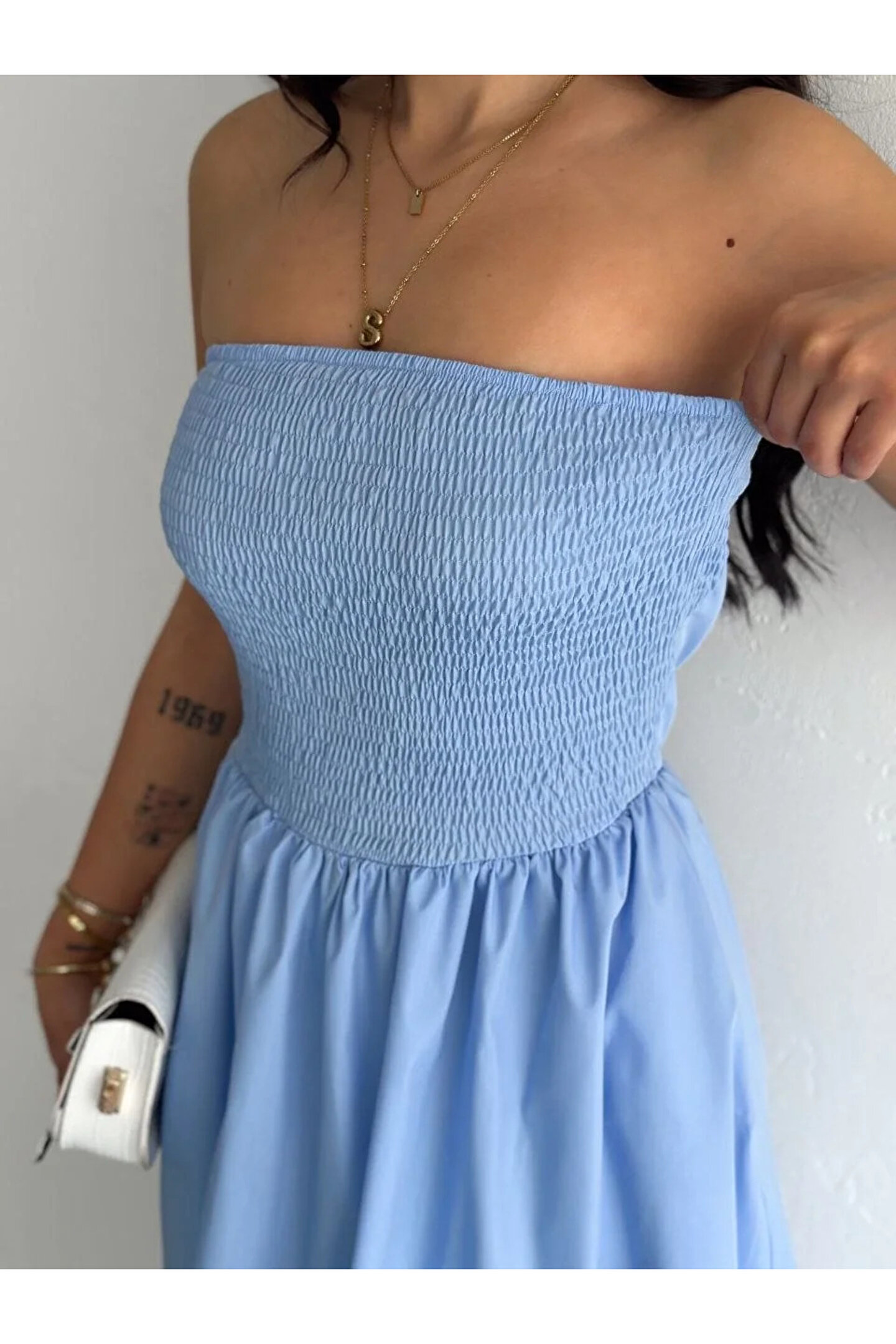 ruum fashions Straplez Pileli Elbise - Açık Mavi