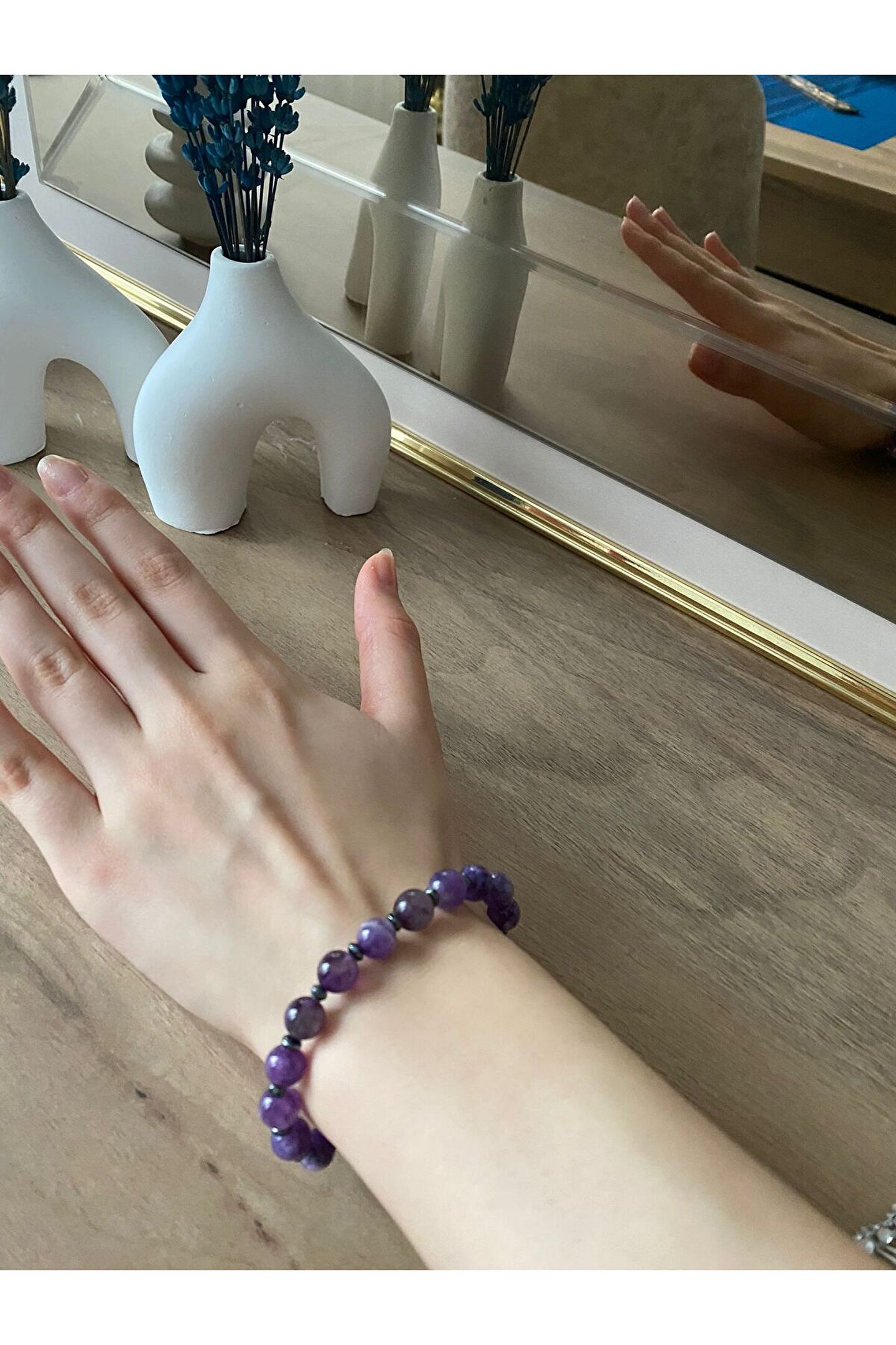 Ametist; genellikle mor renkte, doğada bulunan bir mineraldir. Bu mineral; takı yapımı, süs eşyaları ve dekoratif amaçlar için kullanılabilir. Aynı zamanda pozitif enerji taşı olarak bilinmektedir. Koruyucu, sakinlik ve dinginlik verici bir özelliği vardır. Metalik bir parlaklığı vardır. Yarı saydam veya opak şekilde gözlemlenir. ; Sertlik derecesi 5,5-6,5 arasıdır. ; Magmatik kayalarda ve hidrotermal damarlarda yoğun olarak bulunur. ; Zenginlik, canlılık, güç ve cesaret sembolü olarak görülü ; El yapımı kadın girişimciler yapmaktadır doğal taştır