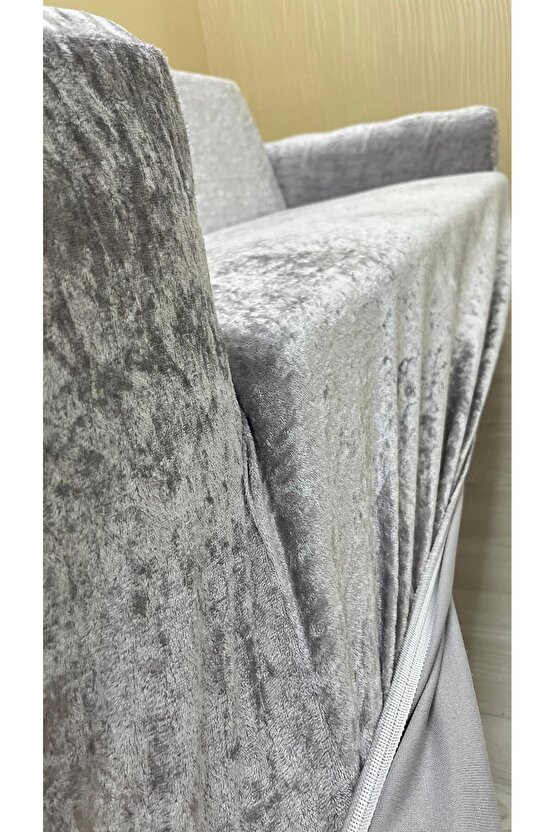 Sahaneev 11 Parlak Kadife Giydirme Koltuk Örtüsü GÜMÜŞ GRİ