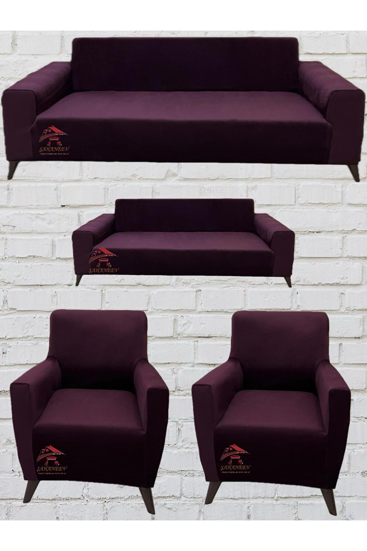 Sahaneev 3+2+1+1 İtalyan Süet Koltuk Örtüsü(MÜRDÜM RENK)