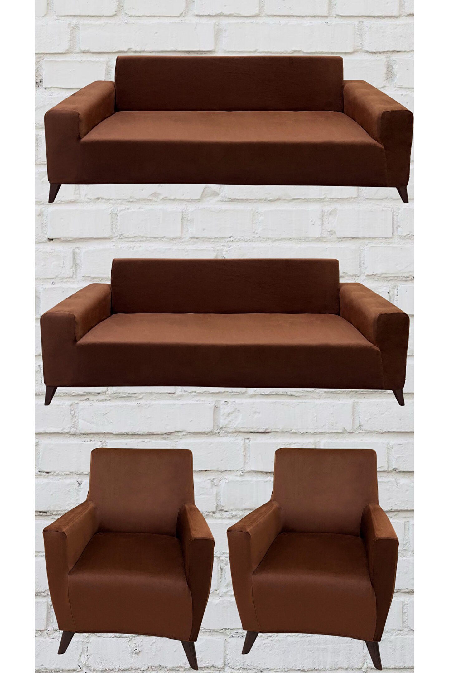 Sahaneev 3+3+1+1 İtalyan Süet Koltuk Örtüsü(KAHVERENGİ)