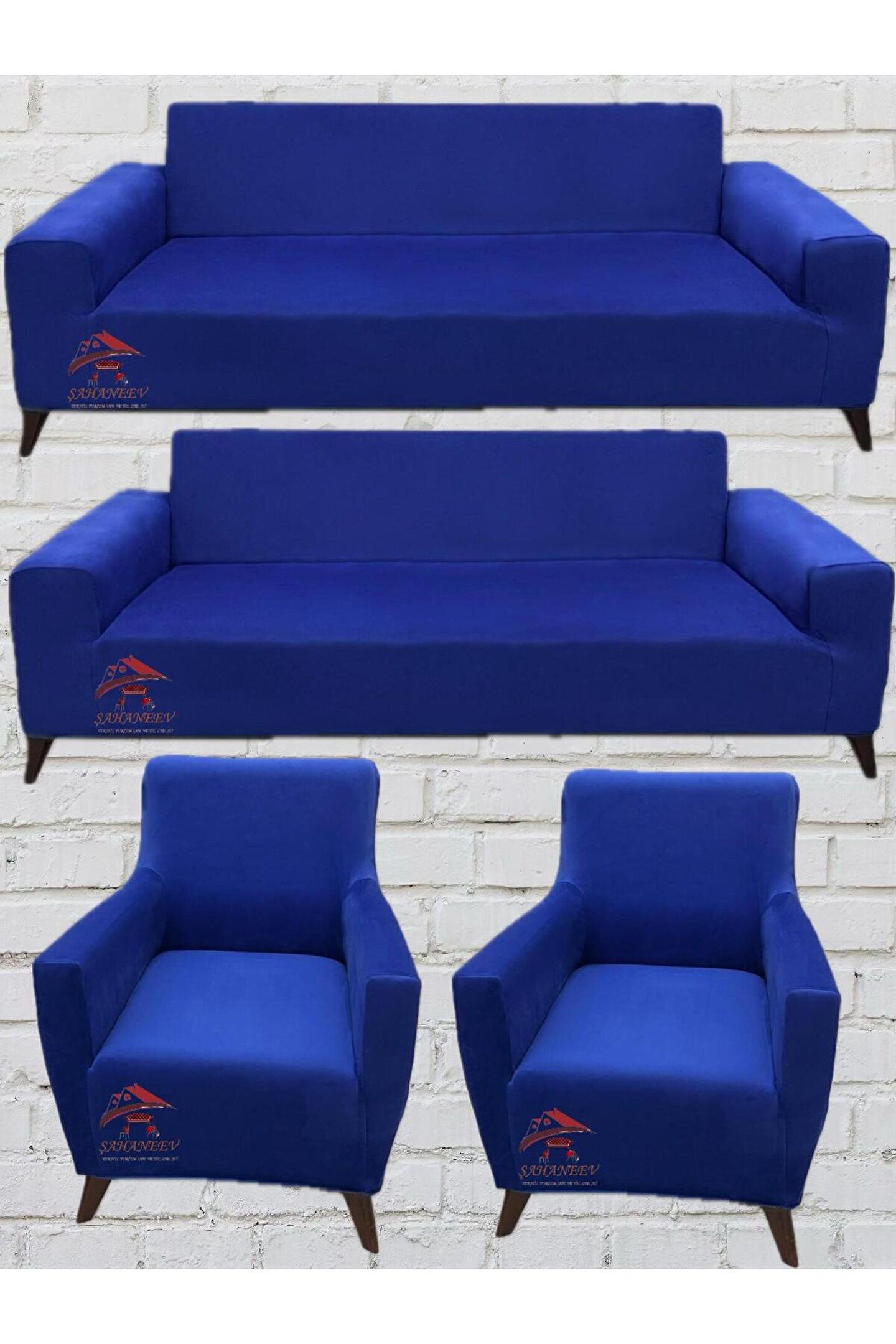 Sahaneev 3+3+1+1 İtalyan Süet Koltuk Örtüsü(SAKS MAVİ RENK)
