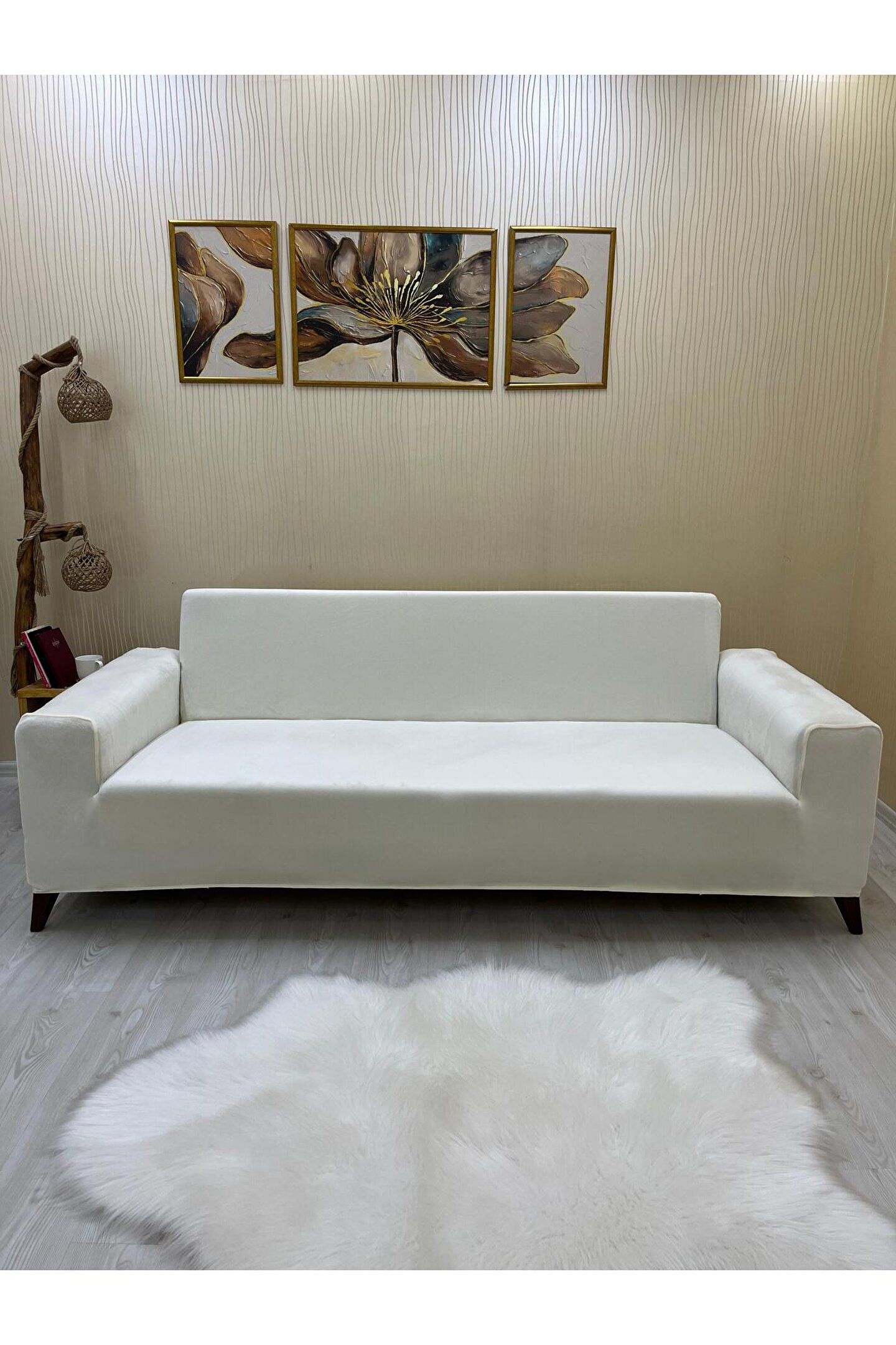Sahaneev 3Lü Koltuk İtalyan Süet Koltuk Örtüsü(KREM)