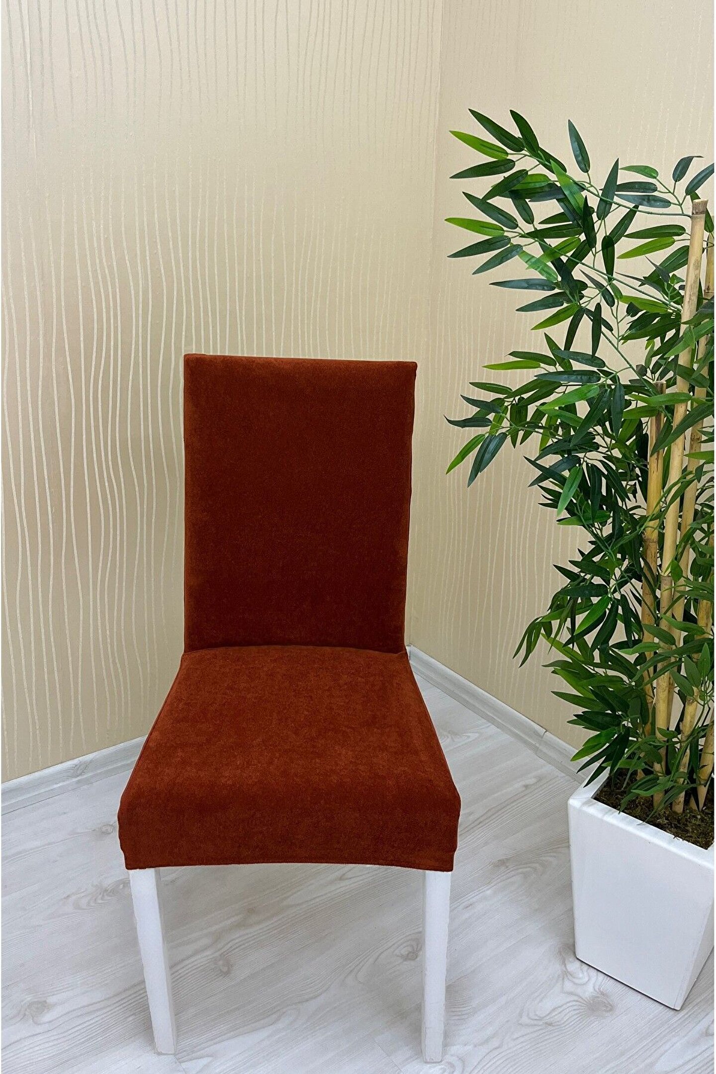 Sahaneev babyface kumaş sandalye kılıfı KİREMİT RENK (4 adet)
