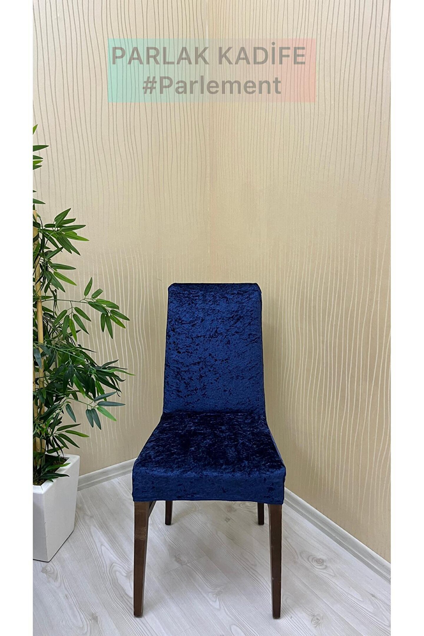 Sahaneev Parlak Kadife Kumaş Standart Sandalye Kılıfı PARLEMENT RENK (4 ADET)