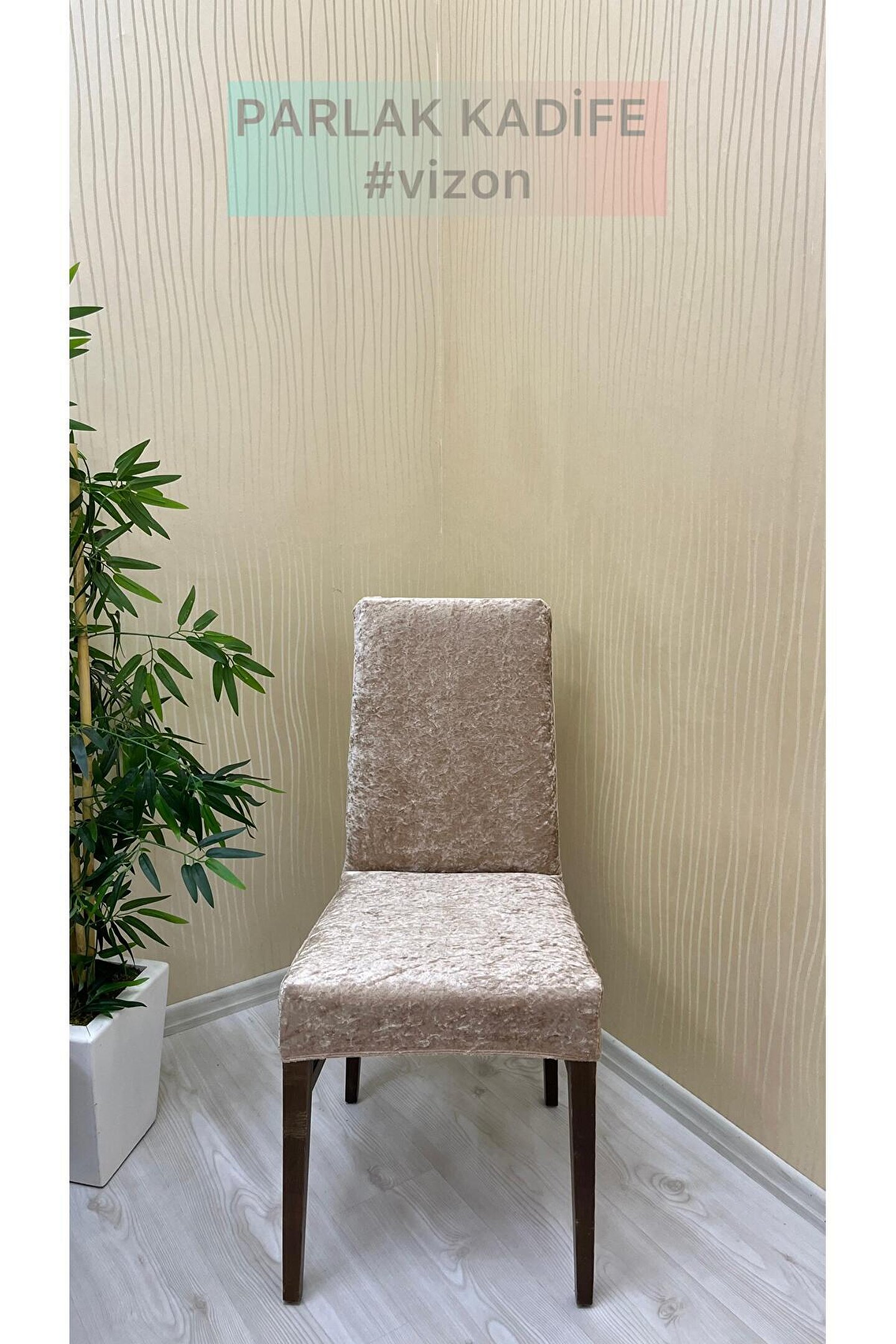 Sahaneev Parlak Kadife Kumaş Standart Sandalye Kılıfı VİZON RENK (4 ADET)