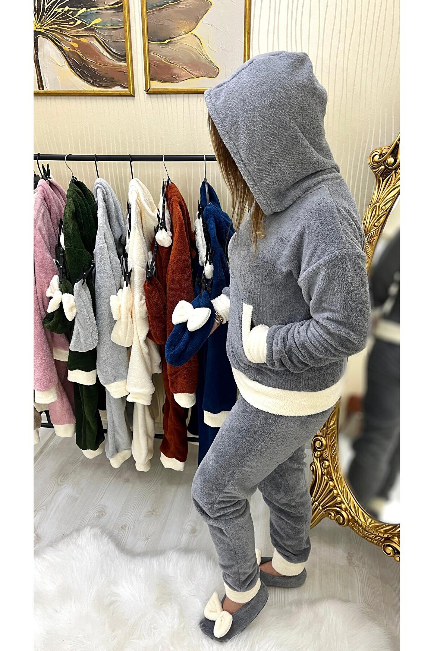 Sahaneev peluş kapşonlu kanguru model (PATİK HEDİYELİ)