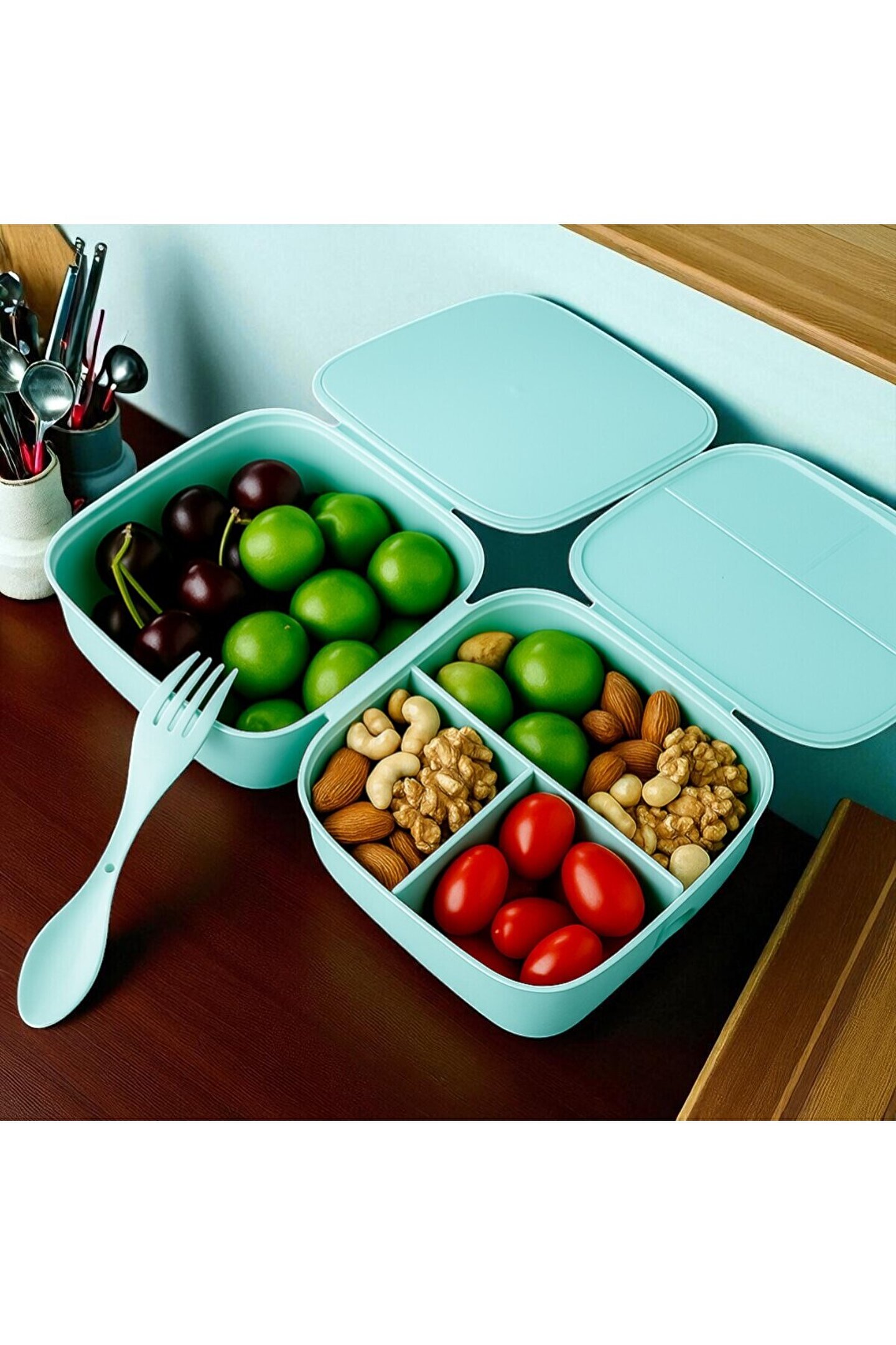 Günlük kullanım için idealdir ve çocukların beslenme ihtiyaçlarını karşılamak üzere tasarlanmıştır; Şık tasarımıyla dikkat çeken bu beslenme kabı, dayanıklı malzemeden üretilmiştir ve kolayca temizlenebilir; İçerisinde yer alan bölümler sayesinde farklı yiyecekleri ayrı tutarak hijyenik bir ortam sağlar; Ayrıca, geniş iç hacmi ile bol miktarda yiyecek taşıyabilir ve uzun süreli kullanımlara uygundur;