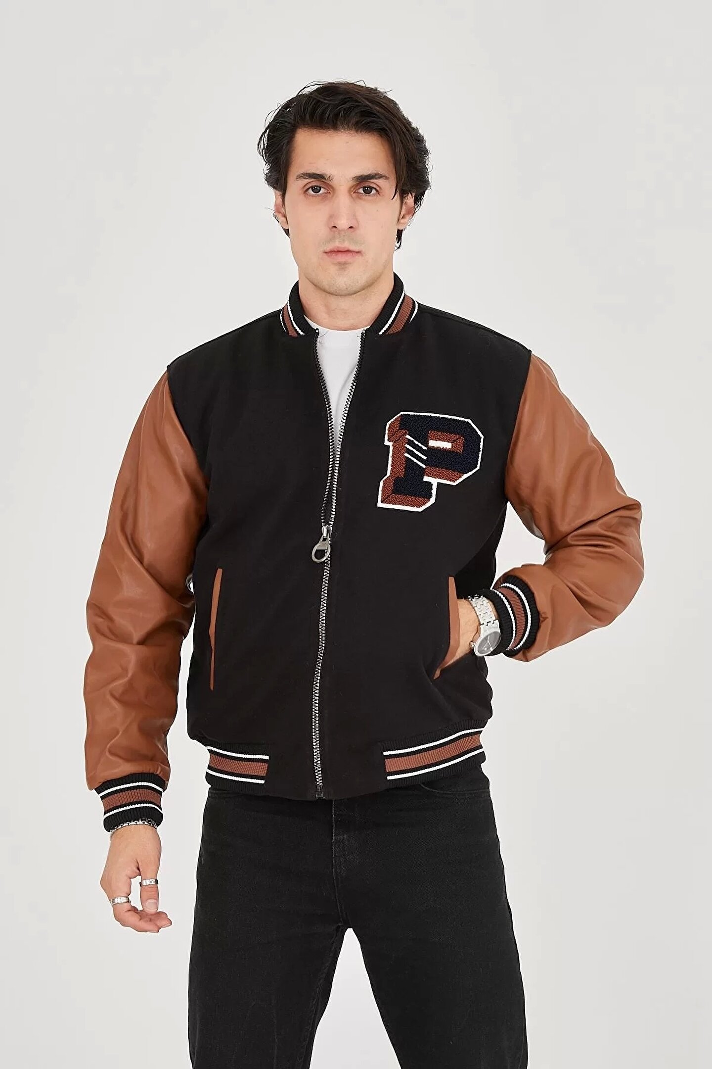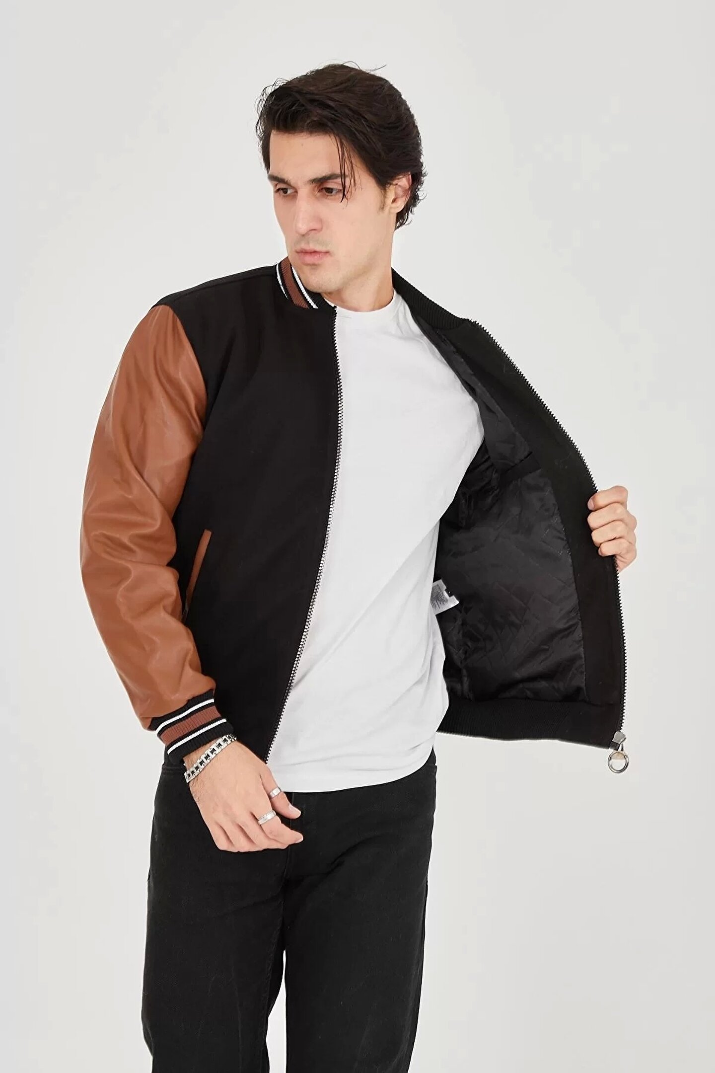 Erkek İçten Elyaf Ve Astarlı Kolları Suni Deri Ceket - Kahverengi