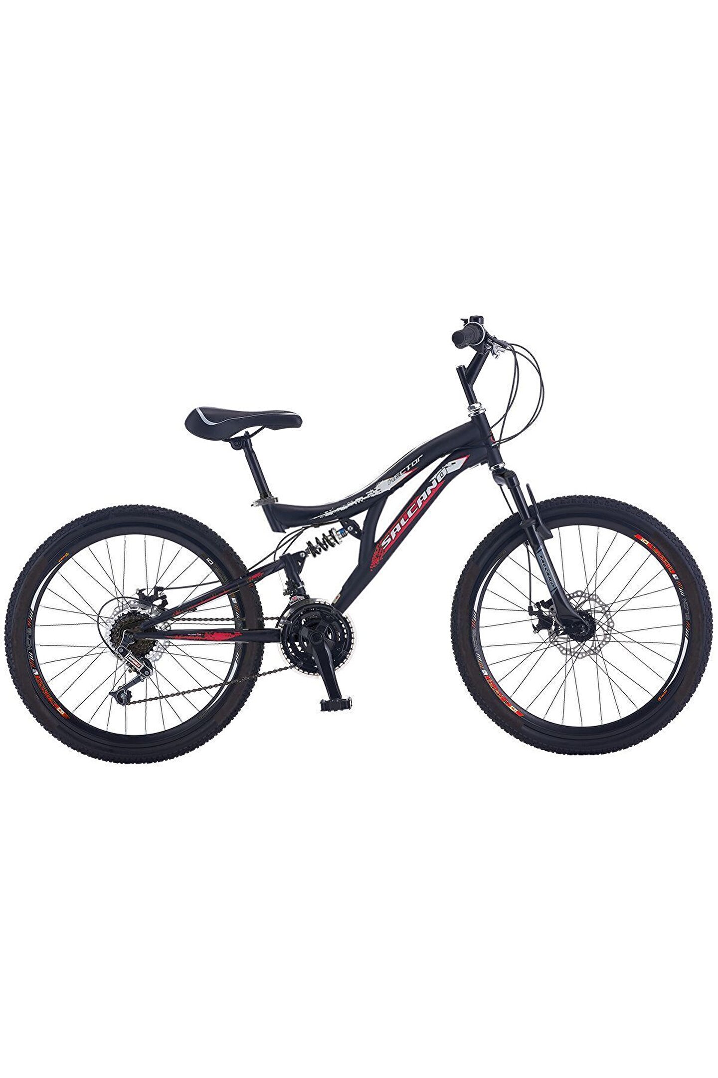 Hector 24 md Disk Fren Dağ Bisikleti 140-165 cm boy-Siyah Kırmızı