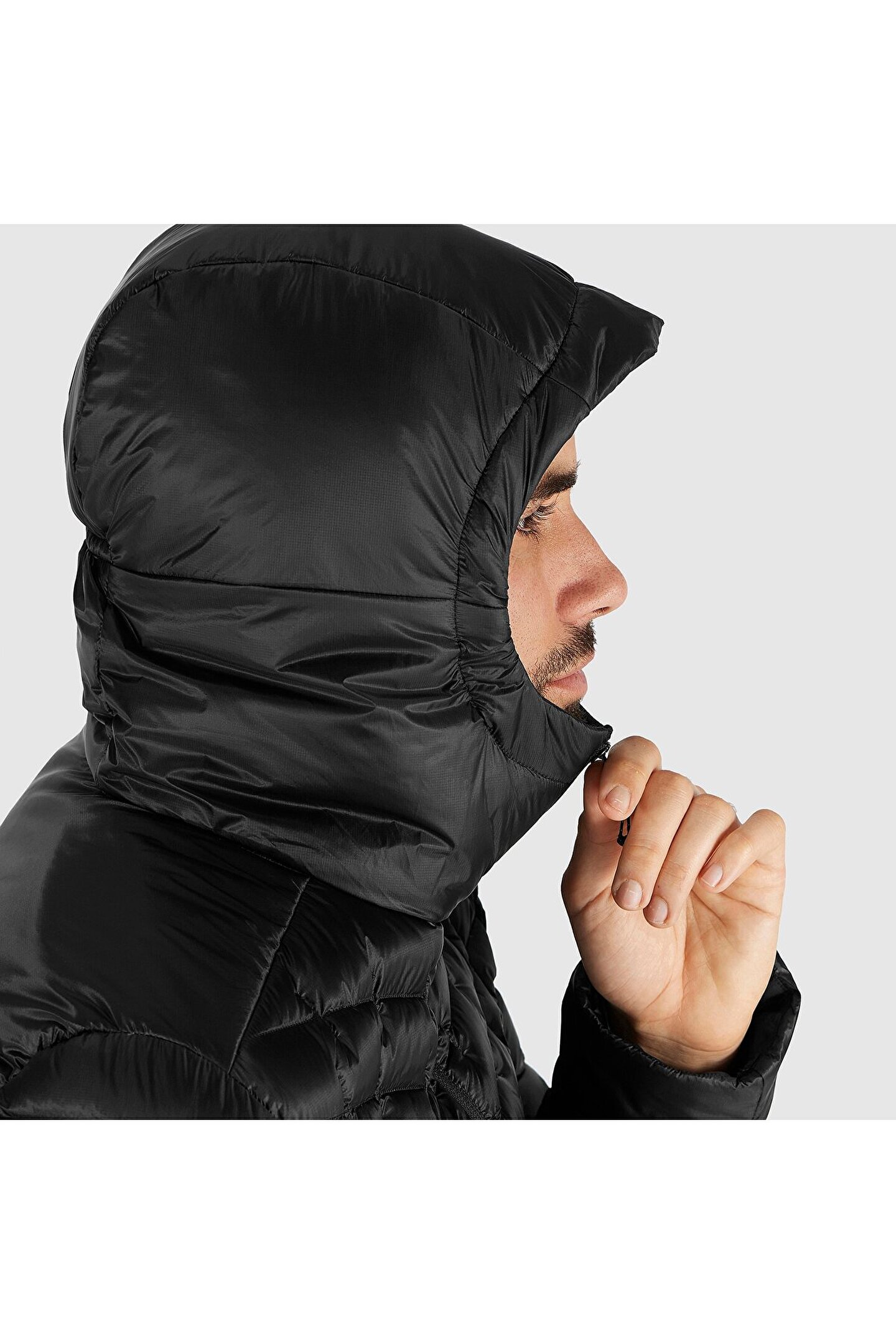 Yüksek boyun; Fermuar bağlama; Kukuletalı; Dağdaki aktiviteler için ideal koruma; Yalıtım ördek tüyü 600 FP göğüs sırtı; Omuzlarda ve kollarda sentetik yalıtım; Geri dönüştürülmüş Pertex dış kumaş; --