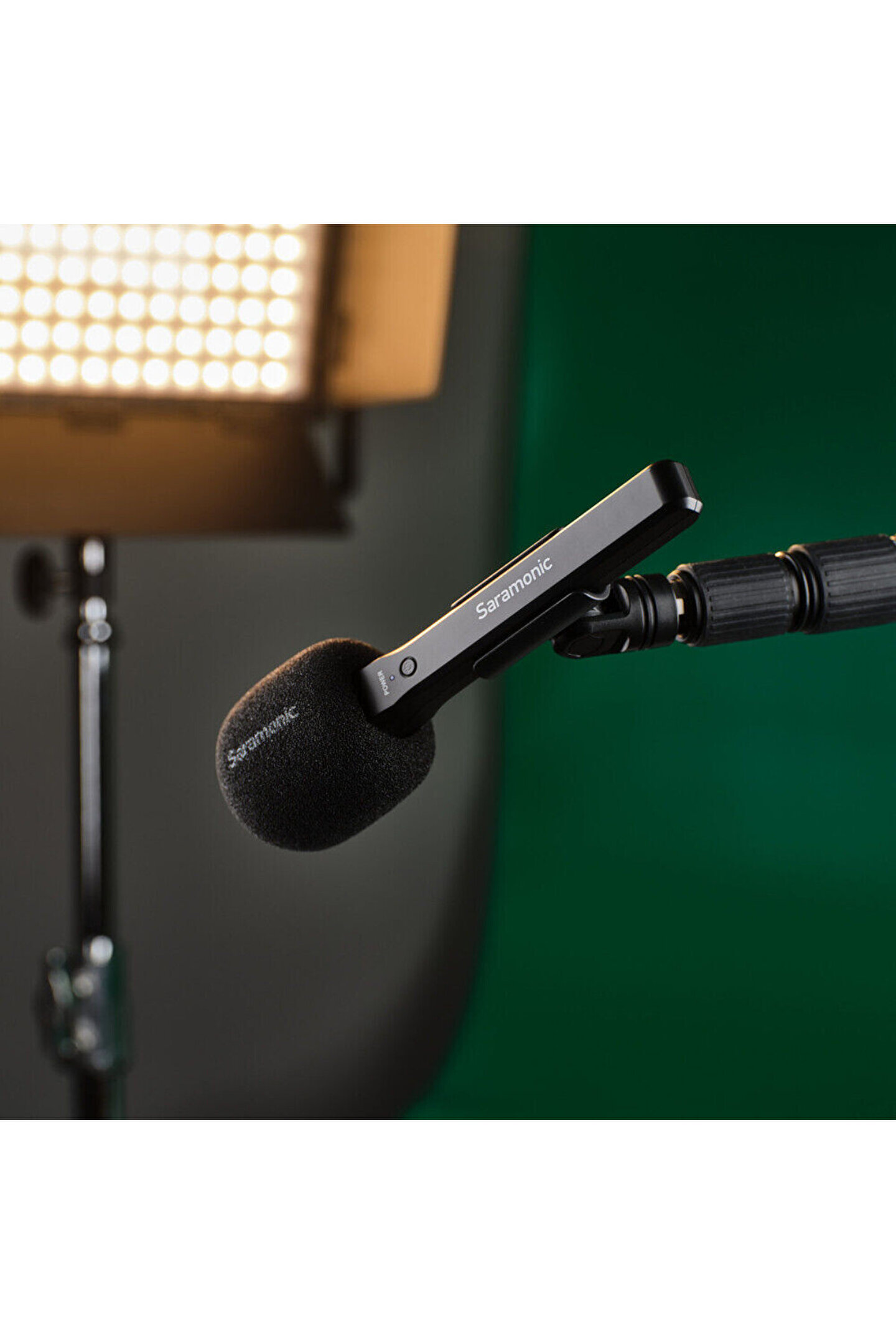 Haber raporlarını, konuşmaları, röportajları ve podcast'leri yakalamayı hızlı ve kolay hale getiren hafif ve ergonomik bir verici tutucu olan Saramonic Blink 500 Pro HM ile Blink 500 Pro TX vericinizi kablosuz bir el mikrofonuna dönüştürün . Vericiniz, dahili 1100 mAh pil ile vericinin çalışma süresini iki katına çıkaran HM tutucusuna tam olarak oturur. Tek tıklamayla eşleştirme, verici tutucuda kalırken gerçekleştirilebilir ve bu da kurulum sürecini basitleştirir.