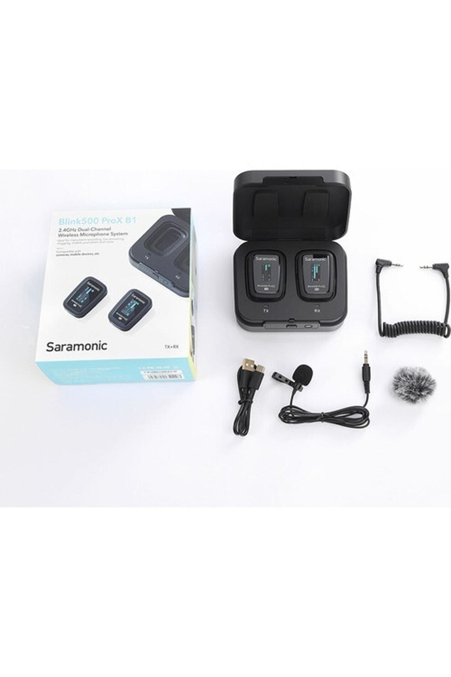 Ek Açıklamalar: Dahili Omni Mikrofonlar ve 3,5 mm Mikrofon Girişi Yüksek Kaliteli Yaka Mikrofonu Dahildir Seçilebilir Stereo veya Mono Çıkış Modları Mikrofon Bilgileri İçin Daha Büyük Canlı OLED Ekran Şarj ve Eşleme İçin Güçlü Şarj Kutusu 10 Saate Kadar Kayıt ve USB-C Şarj Bağlantı Noktası (DC 5V) Açıklamalar: Ultra Kompakt 2,4 GHz Çift Kanallı Kablosuz Mikrofon Sistemi Saramonic Blink500 ProX kablosuz mikrofon sistemi, olağanüstü ses koleksiyonu sayesinde video kaydını kolaylaştırır. ; Saramonic Blink500 ProX güvenilir bir kablosuz mikrofon sistemidir. ; Olağanüstü 2,4 GHz iletim teknolojisi, mikrofonun anlık bilgilerini görebilmeniz için daha büyük bir canlı OLED ekran, ekstra uzun çalışma süresi ve kullanıcı dostu şarj kutusu ile birlikte içerik oluşturucuların daha iyi kayıt deneyimleri yaşamasını sağlar. ; Saramonic Blink500 ProX serisi ile videolarınızı bir sonraki seviyeye taşıyın. ; Kararlı ve Basit 2,4 GHz Dijital Kablosuz Tipik analog kablosuz sistemler, TV ve radyo dalgalarından kaynaklanan parazitlere karşı hassastır. ; Saramonic Blink 500 ProX, 2,4 GHz bandında çalışarak oluşabilecek problemleri önler. ; Geliştirilmiş Fonksiyon İyileştirmeleri Her bir Saramonic Blink500 ProX verici, yüksek kaliteli yerleşik çok yönlü kapasitif kapsüle ve ayrıca bir yaka mikrofonunu takmak için 3,5 mm TRS girişine sahiptir. ; 84dB'ye varan Sinyal-Gürültü Oranı, 48KHz örnekleme hızı ve 20-20KHz frekans tepkisi ile arka plan gürültüsünü mümkün olan en az seviyeye indirerek saf ve net ses kaydetme yeteneğine sahiptir. ; 8 ms'lik ultra düşük gecikme süresi sayesinde kullanıcılar, çevrimiçi toplantıları veya çevrimiçi öğretimi daha kolay ve daha güvenilir bir şekilde gerçekleştirebilir. ; Ek olarak, post prodüksiyonda kolay ses düzenlemesi için seçilebilir mono veya stereo modlarla aynı anda iki vericiyi işleyebilir. ; Geniş Uyumluluk ve Uzun Pil Ömrü Mikrofon sistemi 10 saat çalışabilir ve şarj kutusu ile birlikte ek olarak neredeyse tüm gün kayıt yapmanıza olanak sağlar. ; Ek olarak, şarj kutusunun açılması TX ve RX'i otomatik olarak açacaktır. ; TRS/TRRS kabloları, Type-C veya lightning konnektörlü RX kullanan Saramonic Blink500 ProX DSLR'lere, mikserlere, modern bilgisayarlara, akıllı telefonlara, tabletlere ve çok daha fazlasına bağlanabilir. ; Blink500 ProX'in güçlü ve pratik özellikleri, onu içerik yaratıcıları için ideal bir araç haline getiriyor. ; Saramonic Blink500 ProX B1 DSLR ya da aynasız fotoğraf makineleri, kameralar, 3.5mm cep telefonları ve tabletler ile uyumludur. ; B1 olan modeli 1 alıcı 1 verici (1 konuşmacı) tipinde çalışır. ; Saramonic Blink500 ProX B2 DSLR ya da aynasız fotoğraf makineleri, kameralar, 3.5mm cep telefonları ve tabletler ile uyumludur. ; B2 olan modeli 1 alıcı 2 verici (2 konuşmacı) tipinde çalışır. ; Saramonic Blink500 ProX B3 Apple Lightning girişli iOS cep telefonu ve tabletler ile uyumludur. ; B3 olan modeli 1 alıcı 1 verici (1 konuşmacı) tipinde çalışır. ; Saramonic Blink500 ProX B4 Apple Lightning girişli iOS cep telefonu ve tabletler ile uyumludur. ; B4 olan modeli 1 alıcı 2 verici (2 konuşmacı) tipinde çalışır. ; Saramonic Blink500 ProX B5 Type-C girişli Android cep telefonu ve tabletler, type-c girişli bilgisayarlar ile uyumludur. ; B5 olan modeli 1 alıcı 1 verici (1 konuşmacı) tipinde çalışır. ; Saramonic Blink500 ProX B6 Type-C girişli Android cep telefonu ve tabletler, type-c girişli bilgisayarlar ile uyumludur. ; B6 olan modeli 1 alıcı 2 verici (2 konuşmacı) tipinde çalışır.;