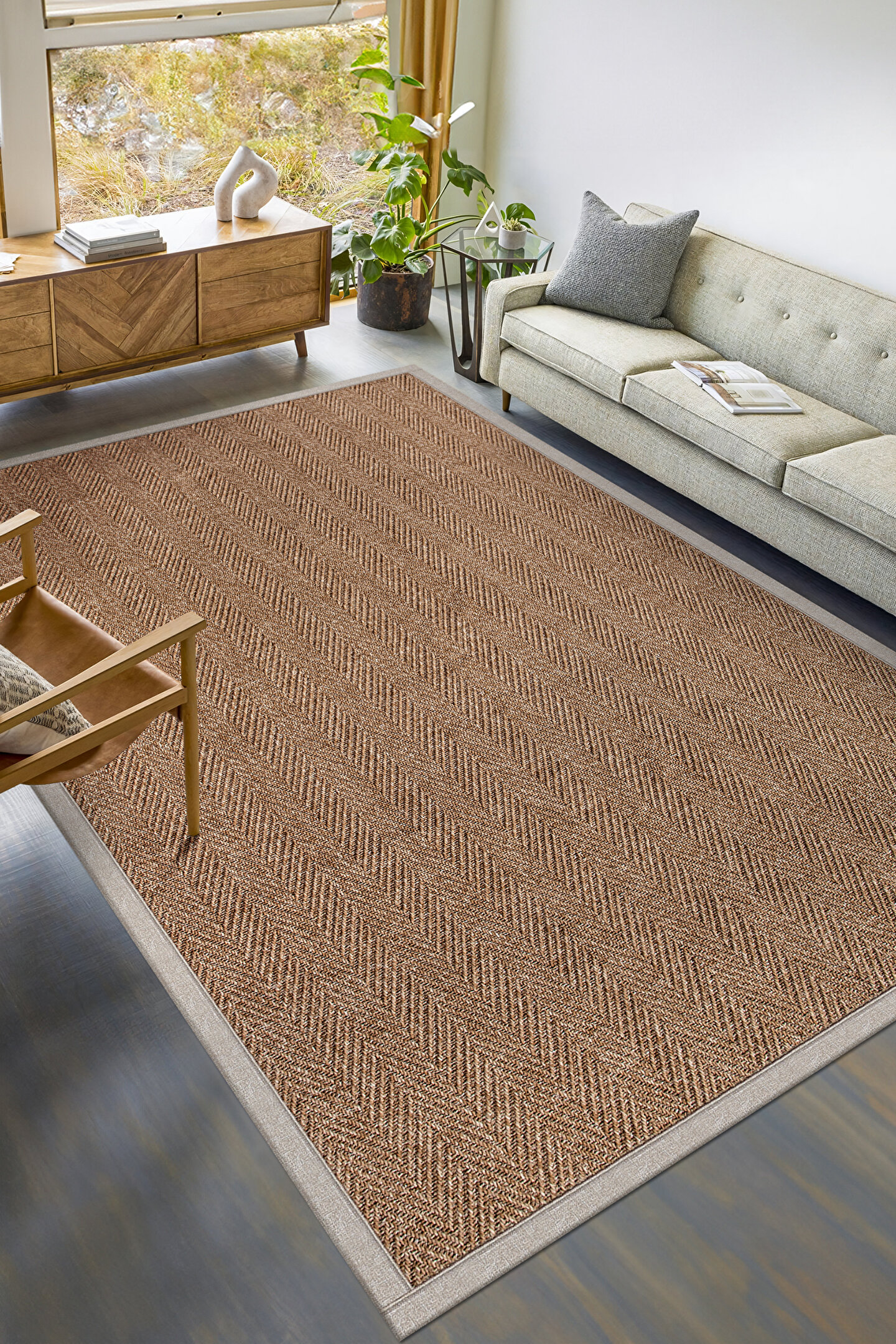 SARAZ HALI 0503-Bej Kumaş Bordür Sisal Halı Kilim Hav Toz Vermez Kolay Temizlenen Hasır Kilim