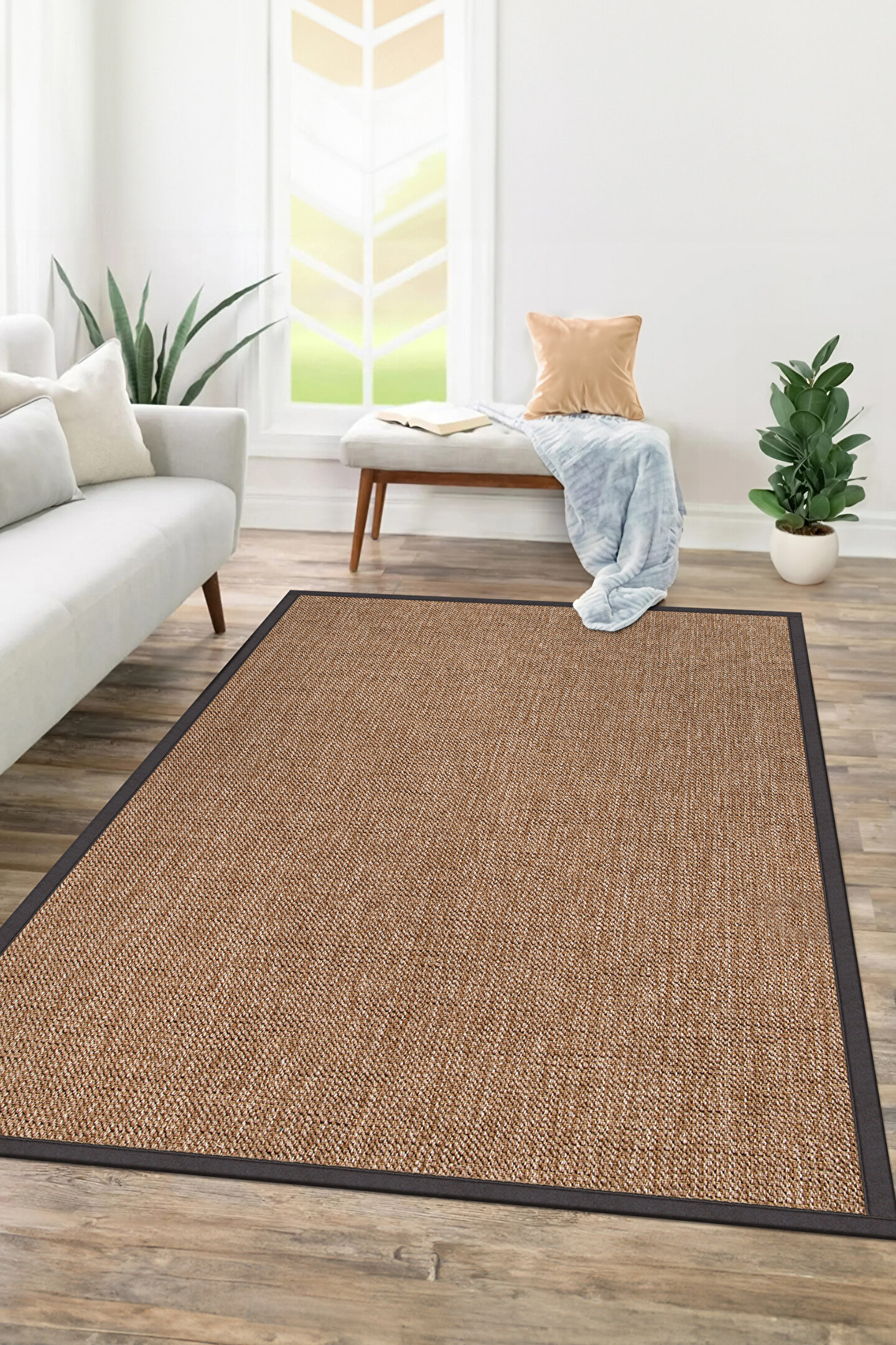 SARAZ HALI 0604-Antrasit Kumaş Bordür Sisal Jut Halı Kilim Hav Toz Vermez Kolay Temizlenen Hasır Kilim