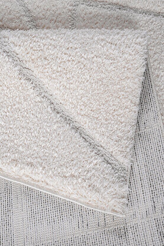 SARAZ HALI B094 Krem Kolay Kullanım Hav Toz Vermez Yumuşak Dokulu Uzun Tüylü Modern Shaggy Halı