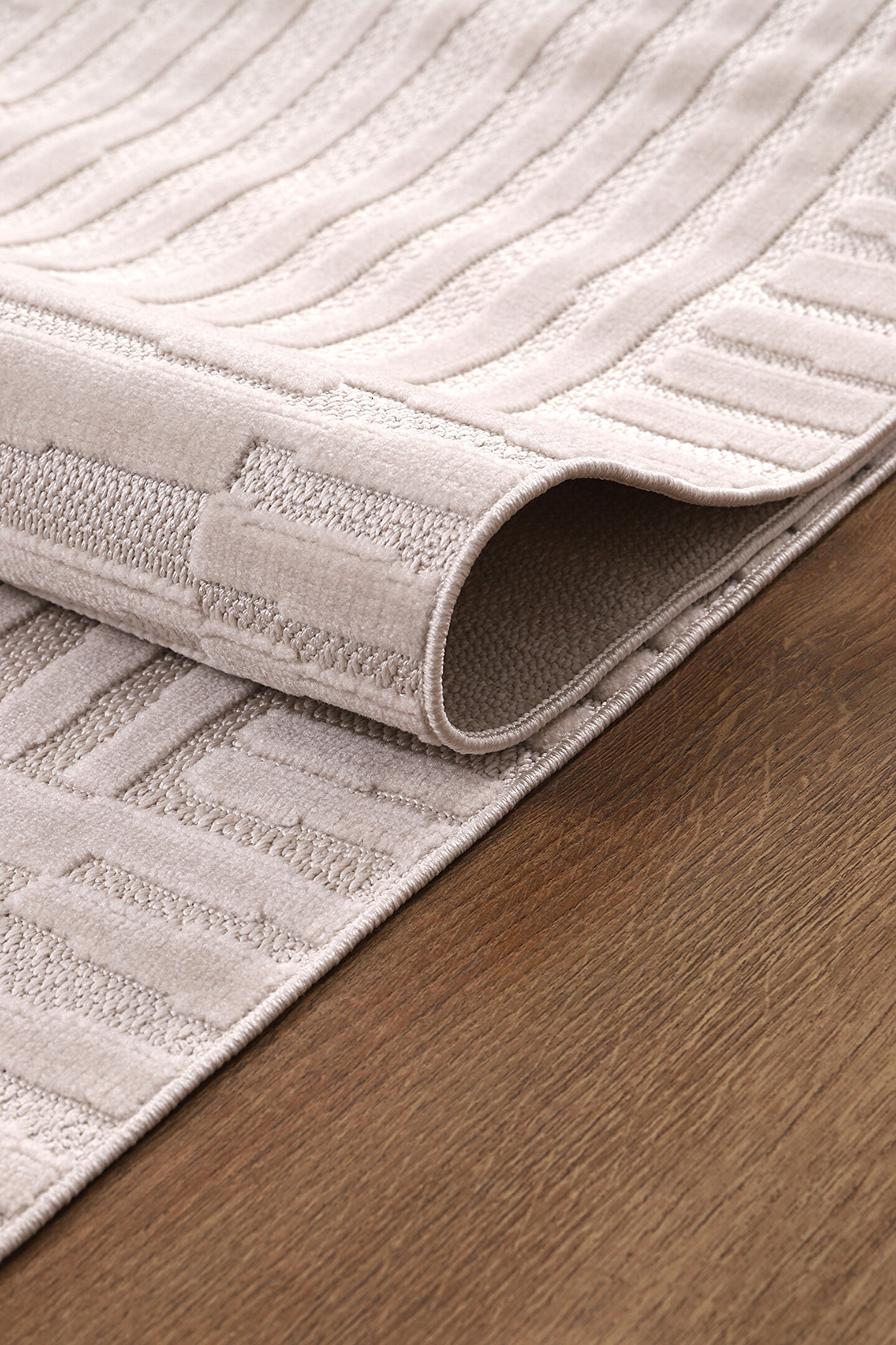 SARAZ HALI Bambu Yumuşak Halı Salon Mutfak Koridor Kesme Yolluk Dokuma Makine Halısı Art Bej