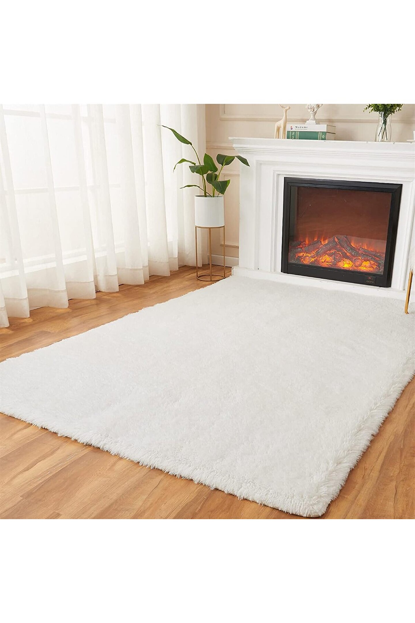 SARAZ HALI Beyaz Yıkanabilir Yolluk Kaymaz Taban Uzun Tüylü Yumuşak Halı Kaymaz Tüylenmez