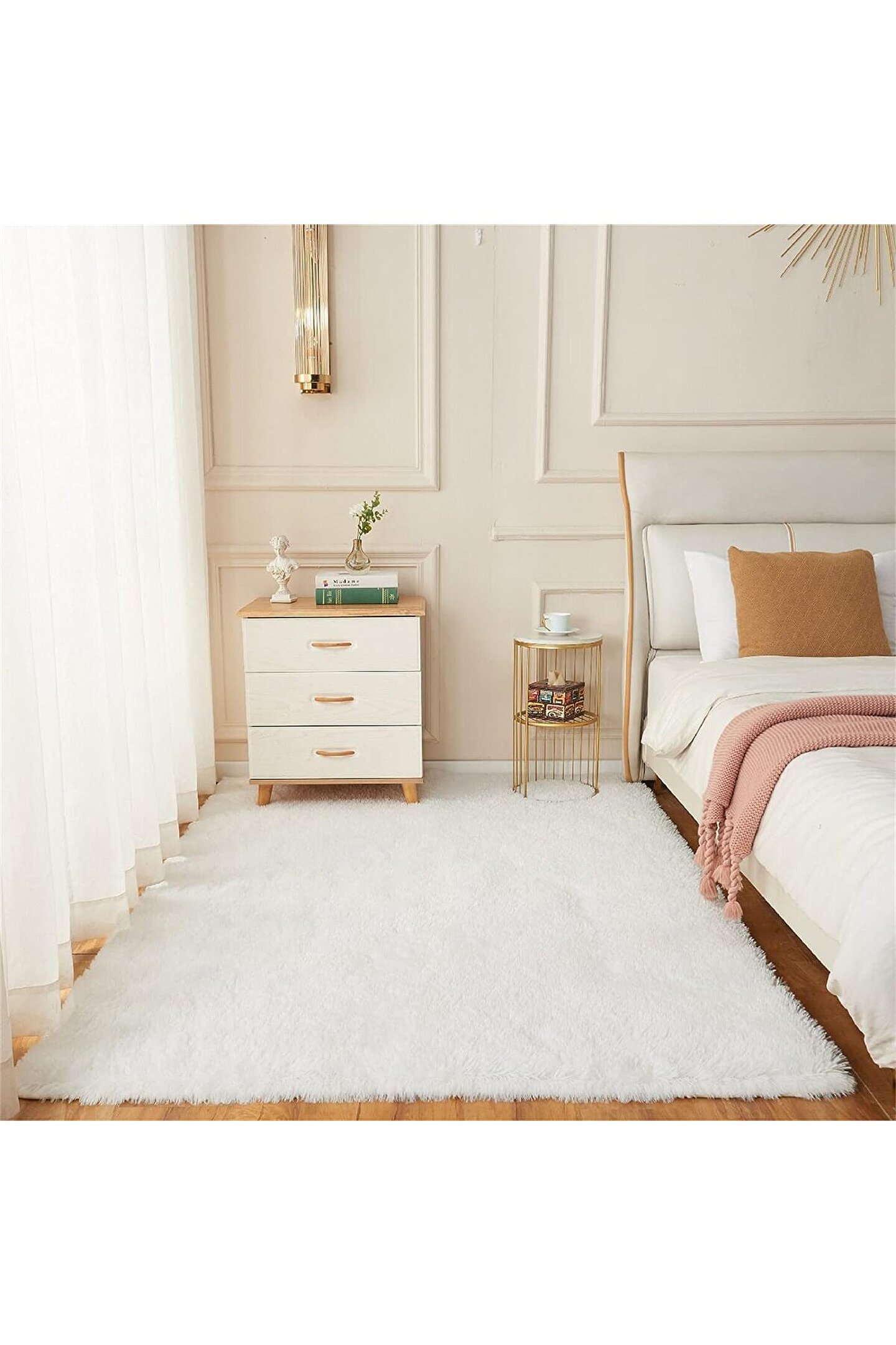 SARAZ HALI Beyaz Yıkanabilir Yolluk Kaymaz Taban Uzun Tüylü Yumuşak Halı Kaymaz Tüylenmez