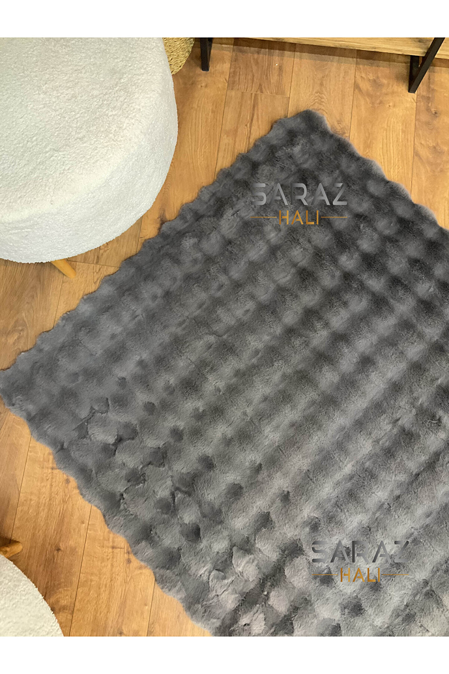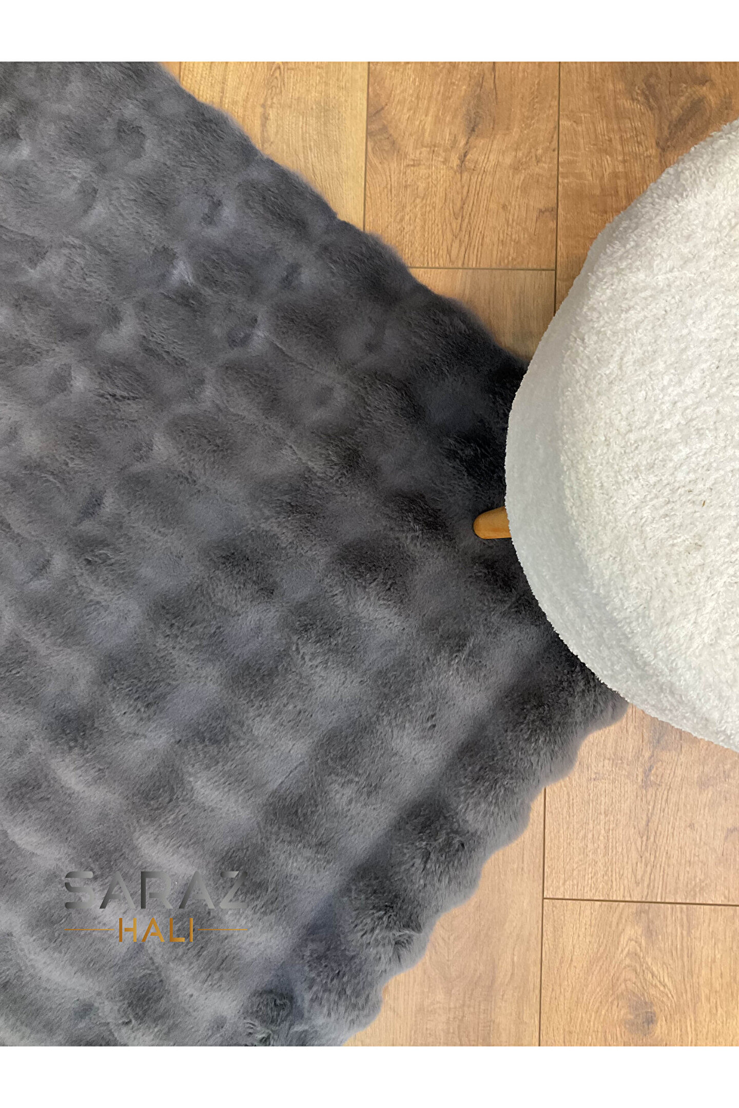 SARAZ HALI Bubble Tavşan Post Yumuşacık Tavşan Tüyü Kaymaz Yıkanabilir Antrasit