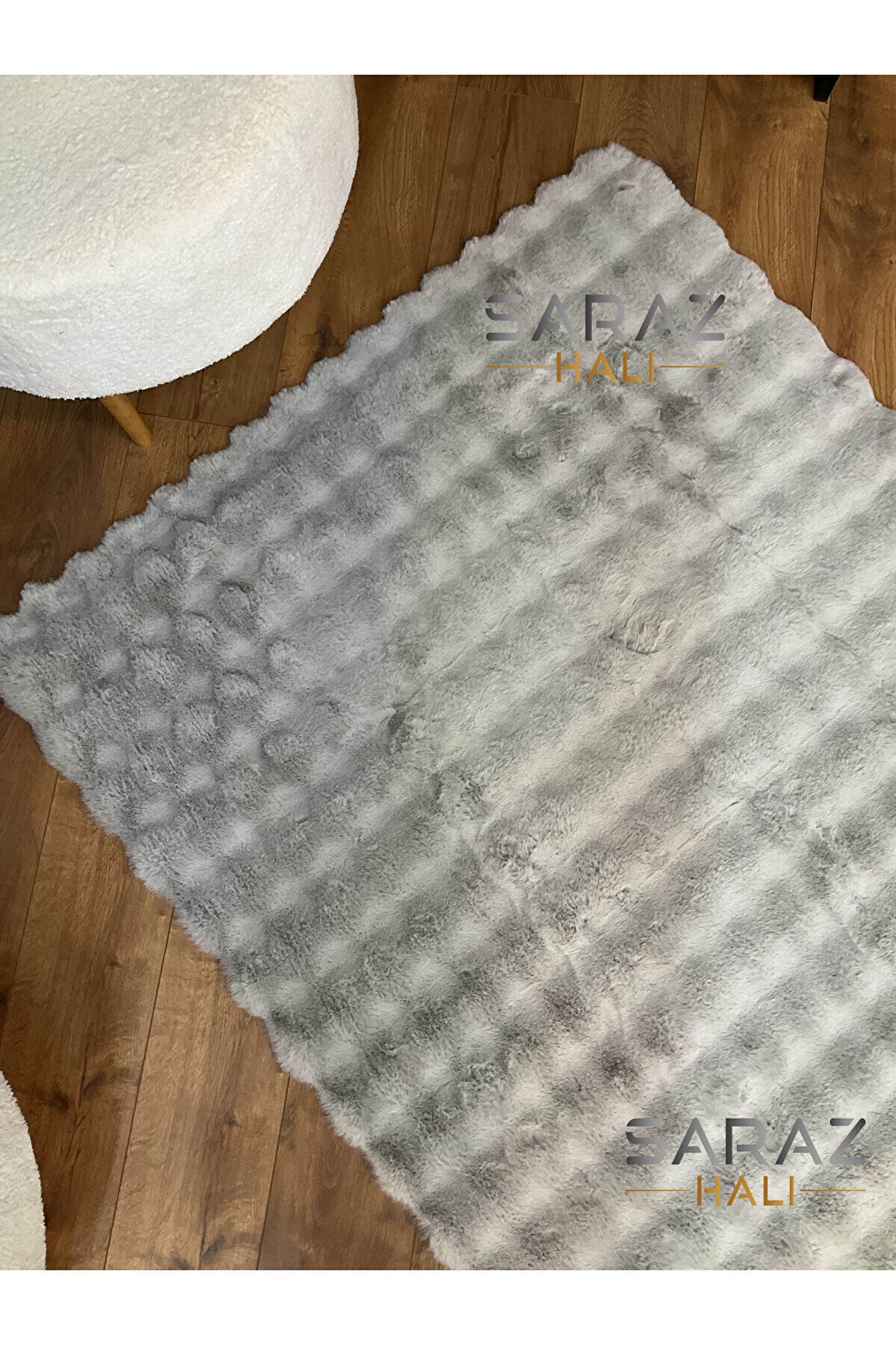 SARAZ HALI Bubble Tavşan Post Yumuşacık Tavşan Tüyü Kaymaz Yıkanabilir Gri