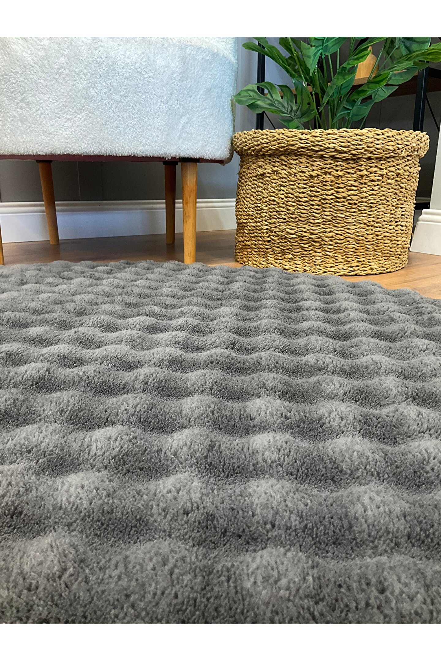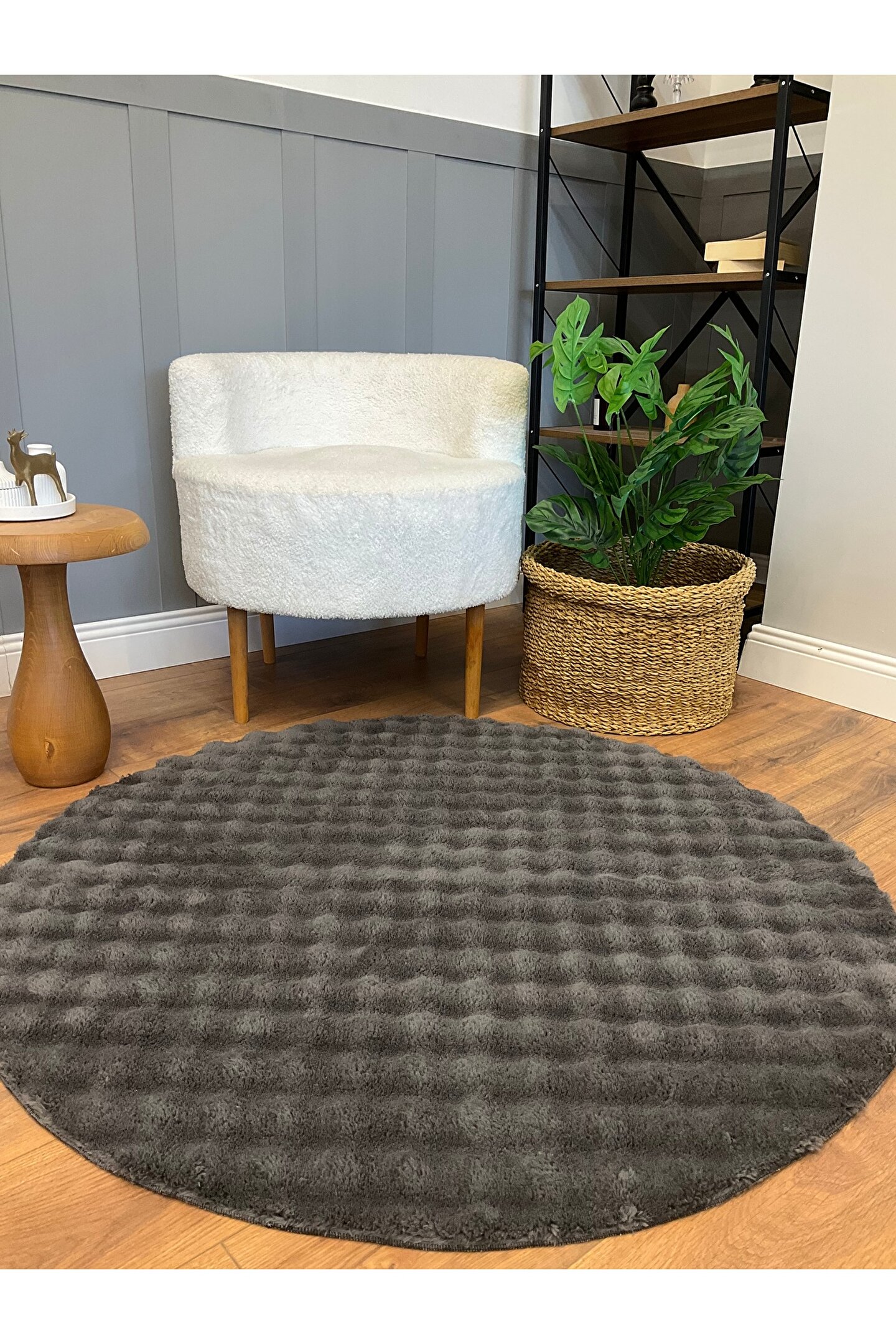 SARAZ HALI Bubble Tavşan Yuvarlak Post Yumuşacık Tavşan Tüyü Kaymaz Yıkanabilir Antrasit