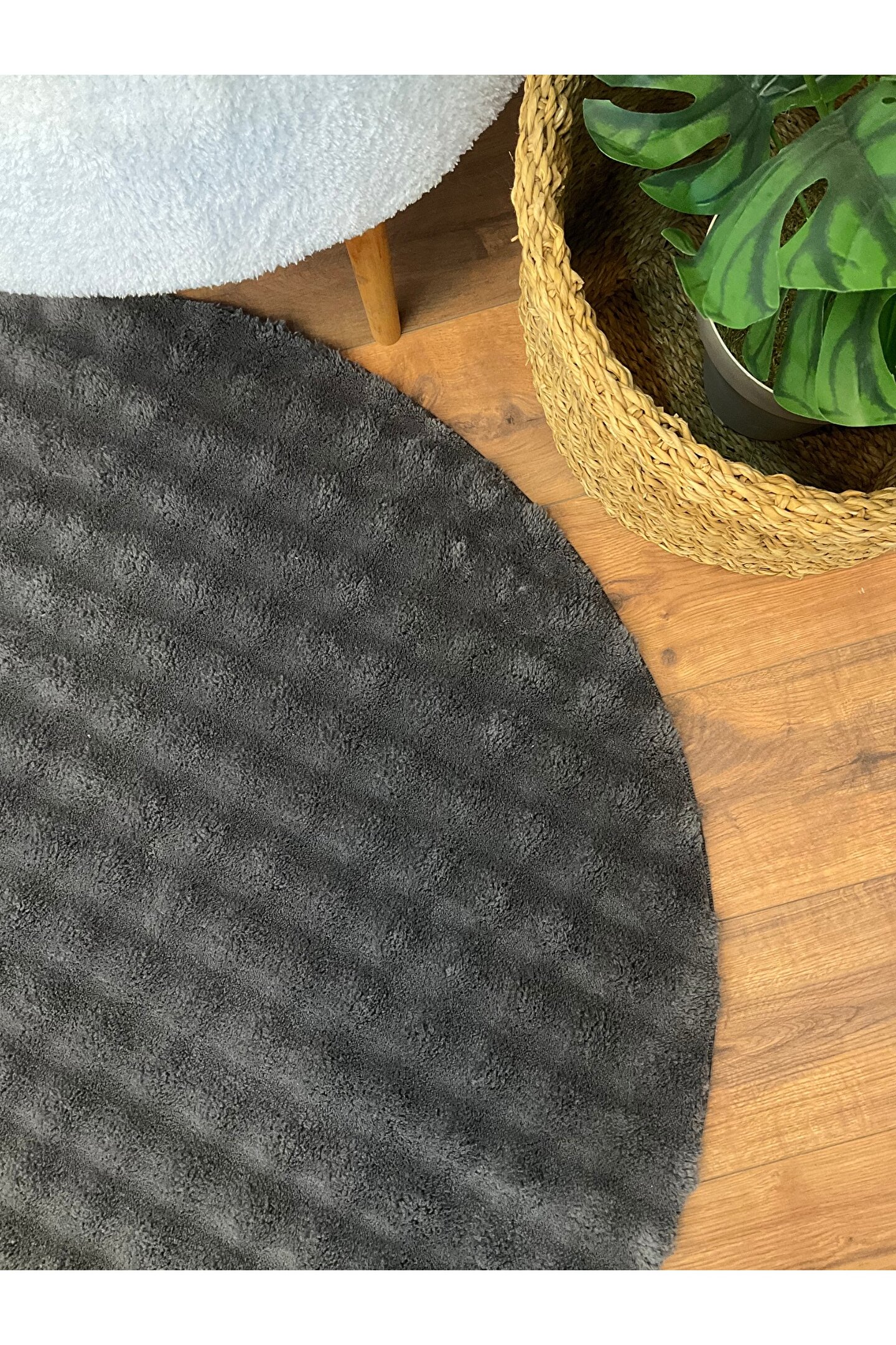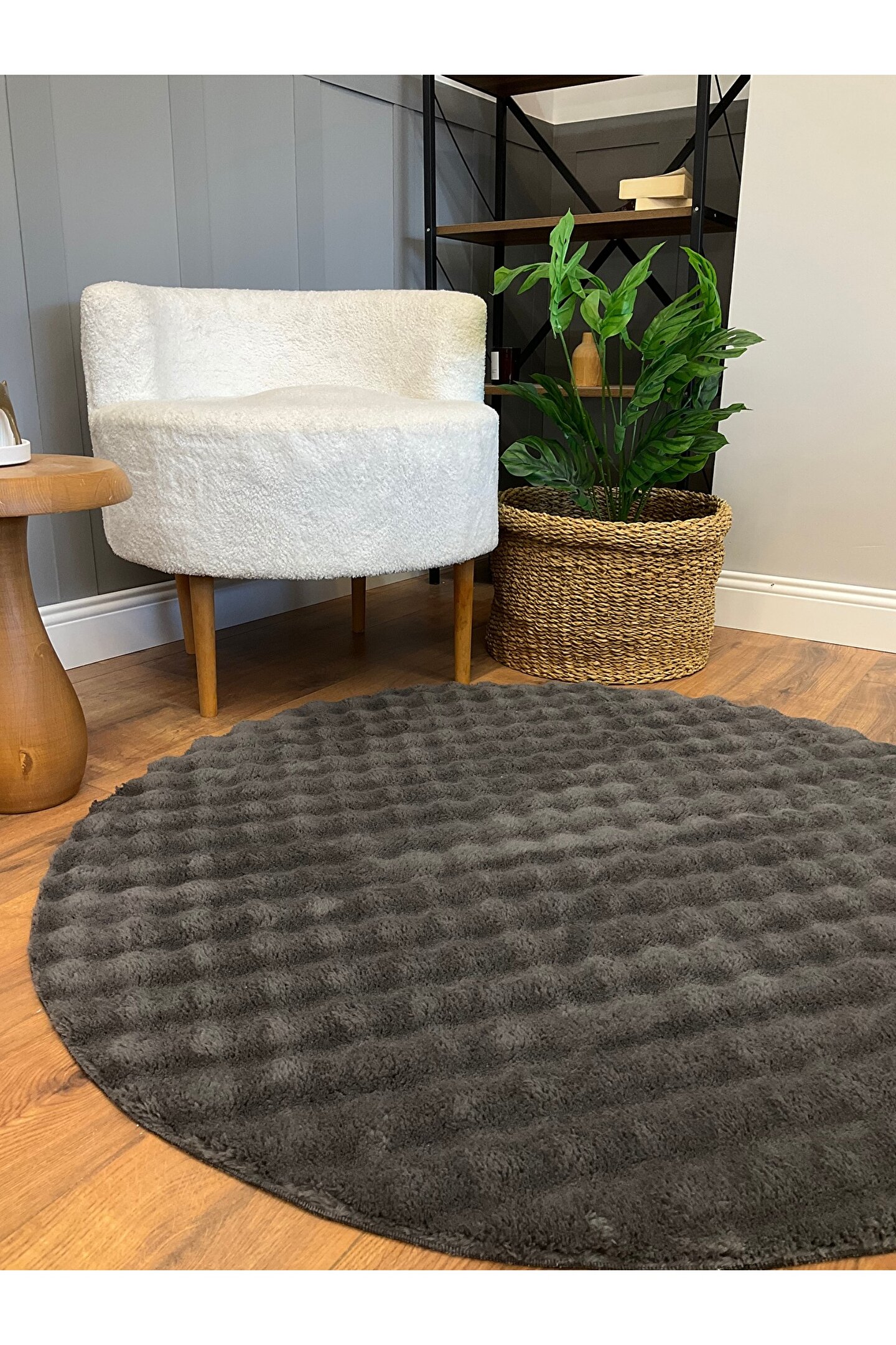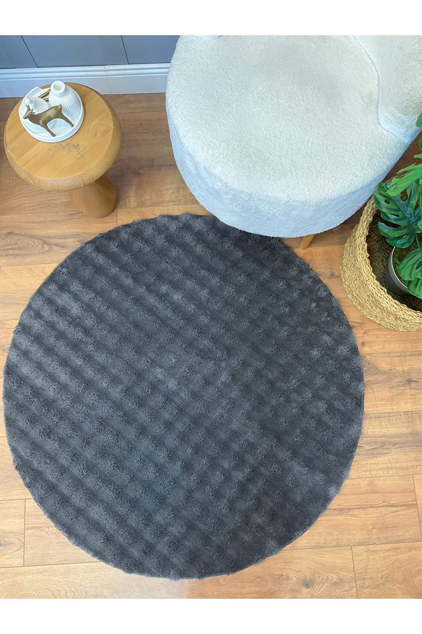 SARAZ HALI Bubble Tavşan Yuvarlak Post Yumuşacık Tavşan Tüyü Kaymaz Yıkanabilir Antrasit